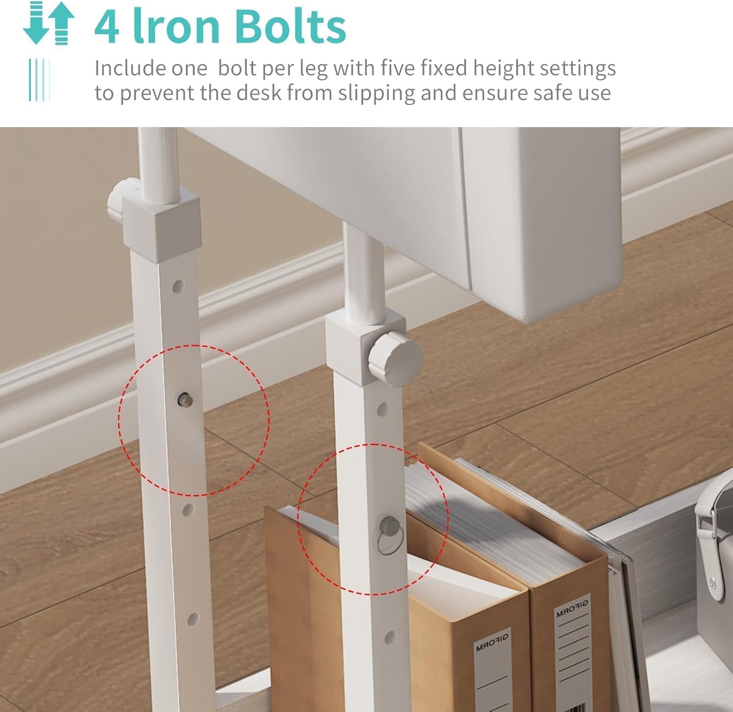 - Height Adjustable Rolling End Table: This versatile end table features adjustable height settings, ranging from 27.9 inches to 41.3 inches, allowing you to customize your workspace whether you're standing or sitting. Includes a retainer with five fixed height settings to prevent the table from slipping and ensure safe use. The desk is USPTO Patent Approved