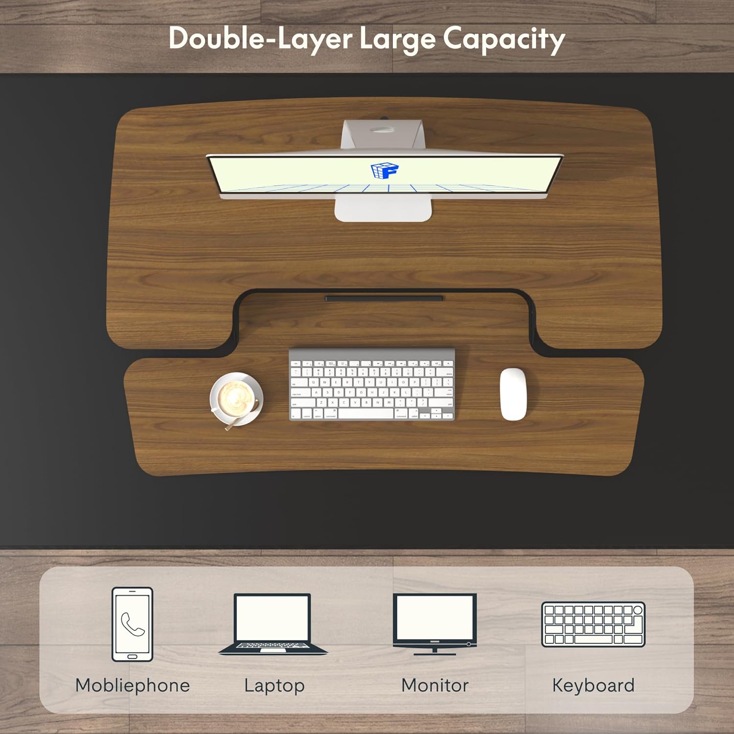 FLEXISPOT Standing Desk Converter 36in Sit to Stand up Riser Height Adjustable Monitor and Laptop Workstation with Spacious 2-Tier Desktop, Walnut Color