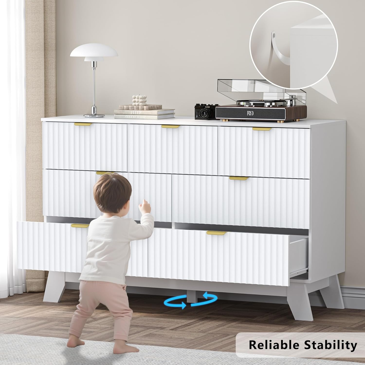 - Stylish Modern Design with Curved Elegance: Featuring BORNOON’s signature fluted panels and curved edges, this 7-drawer dresser seamlessly blends style with functionality. Its modern boho design enhances any bedroom, living room, or hallway while maintaining a sleek, contemporary aesthetic.