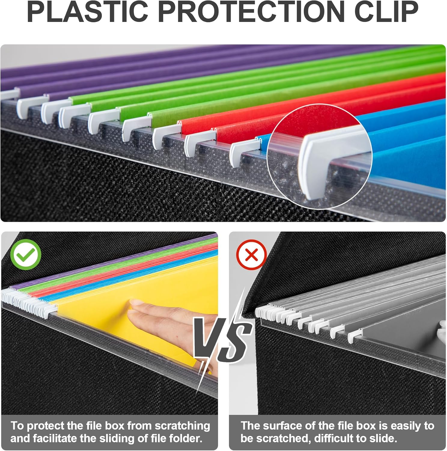 - Hanging Design - Versatile placement in file cabinets, on shelves, or under desks