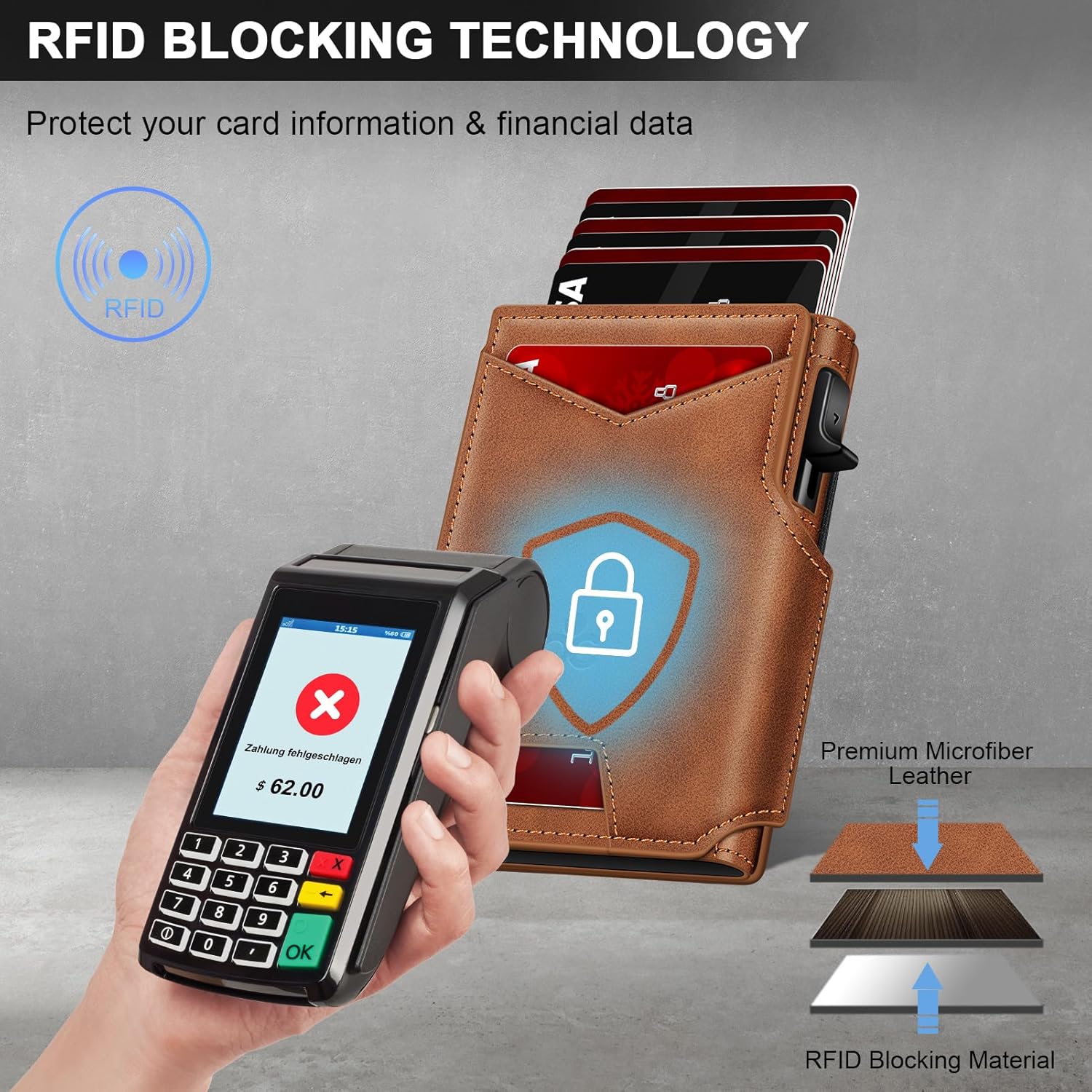 - RFID BLOCKING: The RFID Card holder of this metal wallet for men blocks unauthorized scans of your credit cards, debit cards, and driver’s license, providing maximum protection for your private information.