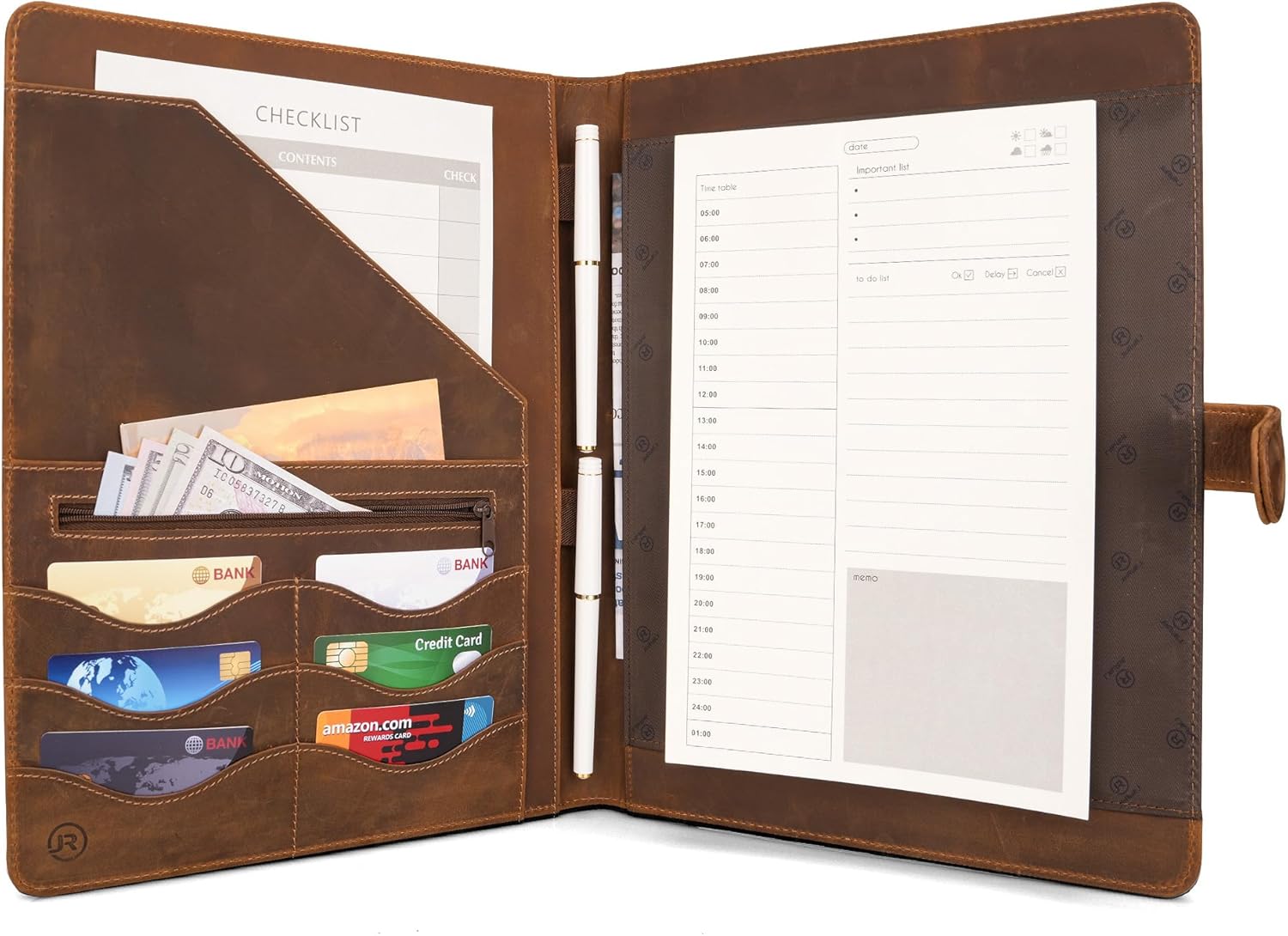 - Versatile Document Management System: Transform how you organize your work essentials with multiple storage compartments. The padfolio includes specialized sections for A4 documents, legal pads, business cards, and writing instruments. The streamlined design maintains a professional appearance while providing ample storage for all your business necessities.