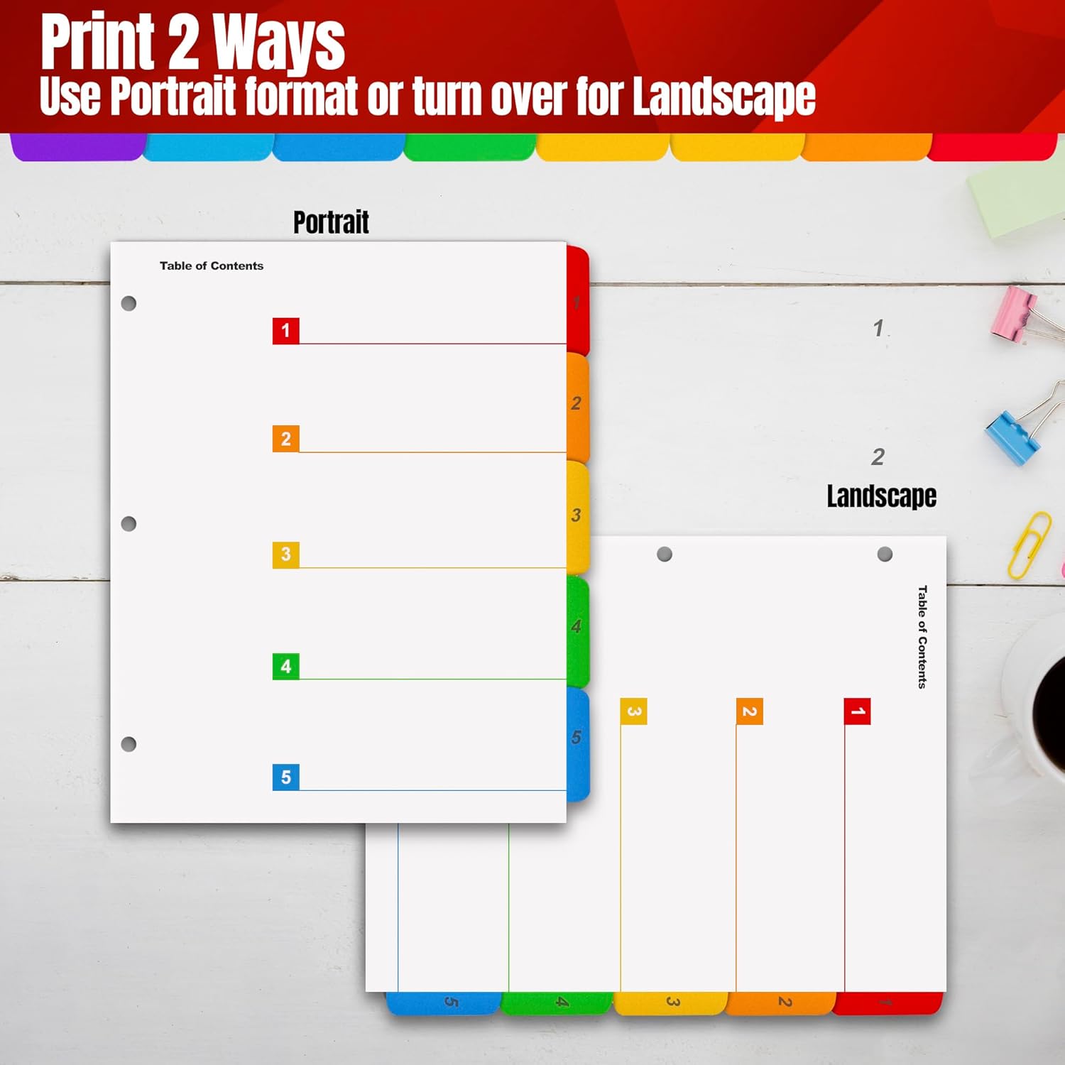 Tab Dividers for 3 Ring Binders – 6 Sets, 1–5 Numbered Index Dividers with Table of Contents – 8.5 x 11 in, 3-Hole Punched – Binder Dividers for School, Office, Filing, Organizing