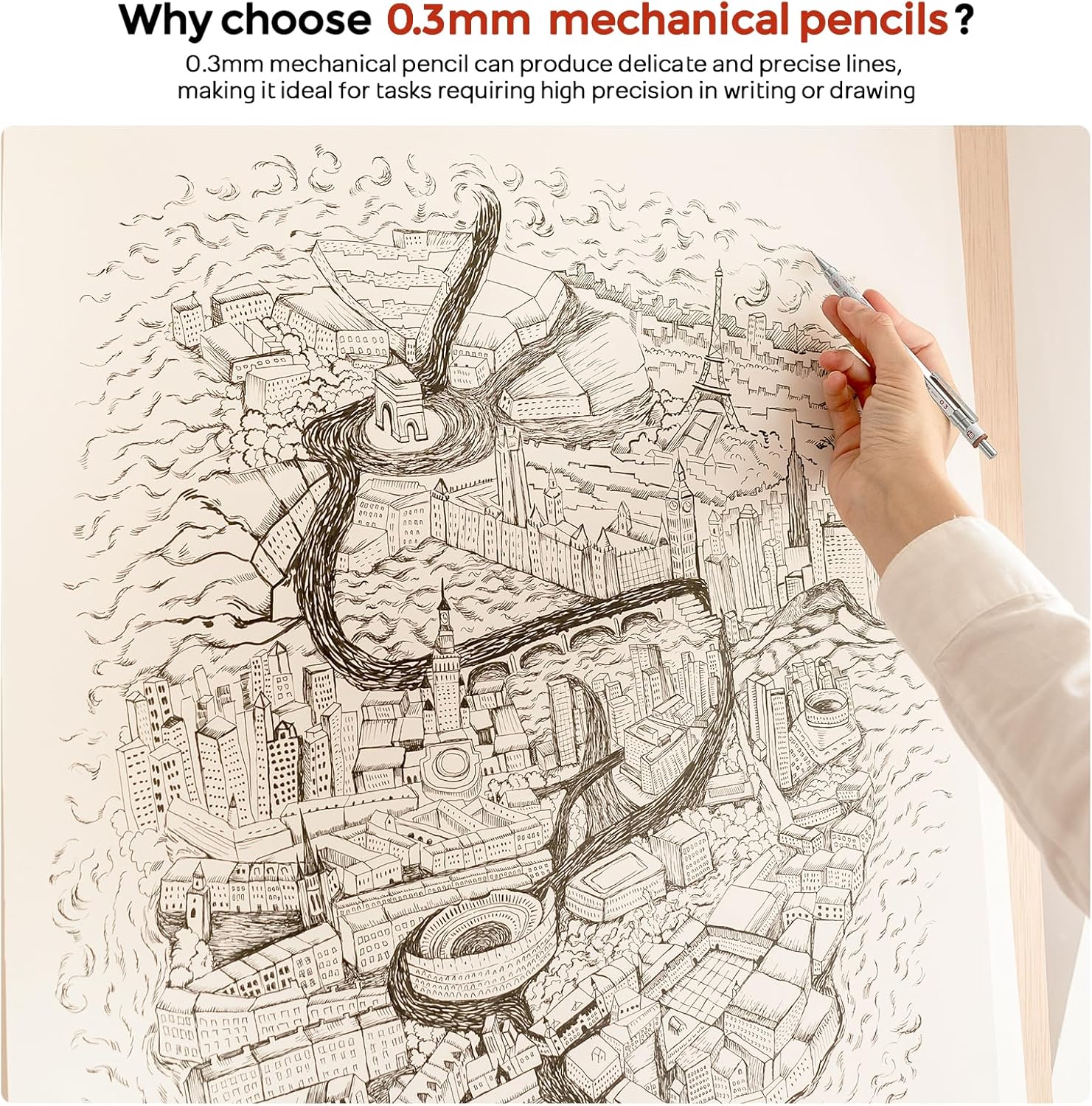 - 0.3mm HB & 2B Lead: Extra durable lead is stronger than standard lead, produce clear and dark line & marks,works with mechanical pencil with no need to sharpen.Easily correct mistakes with a replaceable eraser or 4B eraser. Perfect supplies for writing,drafting, drawing & template work