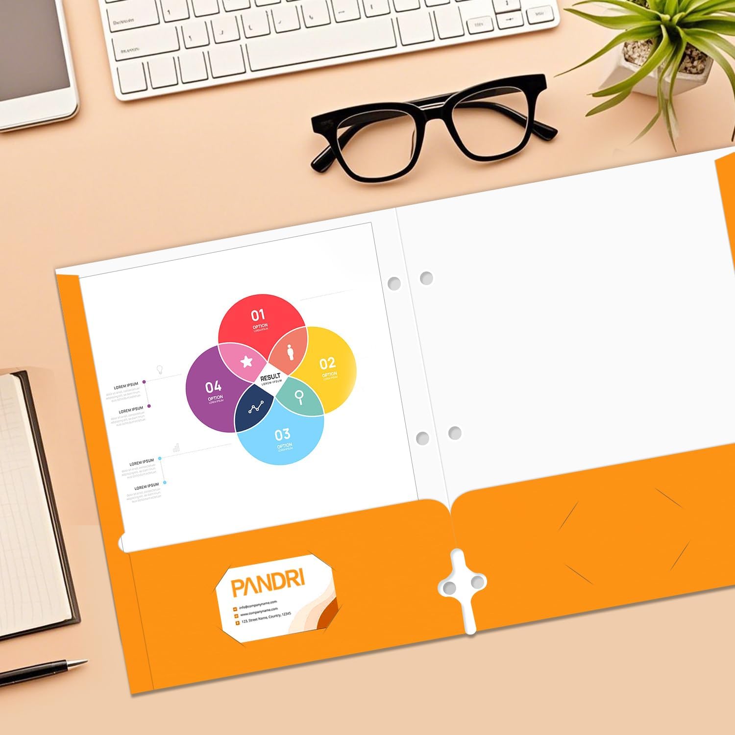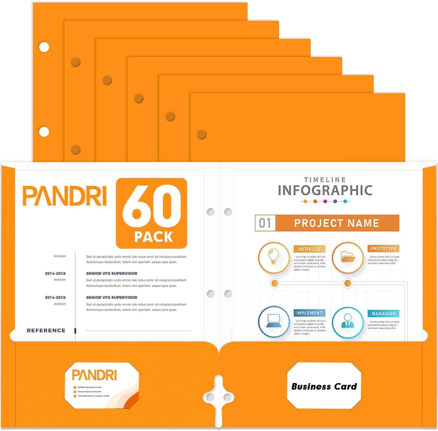 - Folder Design : Each folder has two die-cut business card slots suitable for storing business cards, and the folder with pockets also has three pre-drilled holes so you can easily punch holes for use with the 3-ring binder for convenient storage and management of your documents