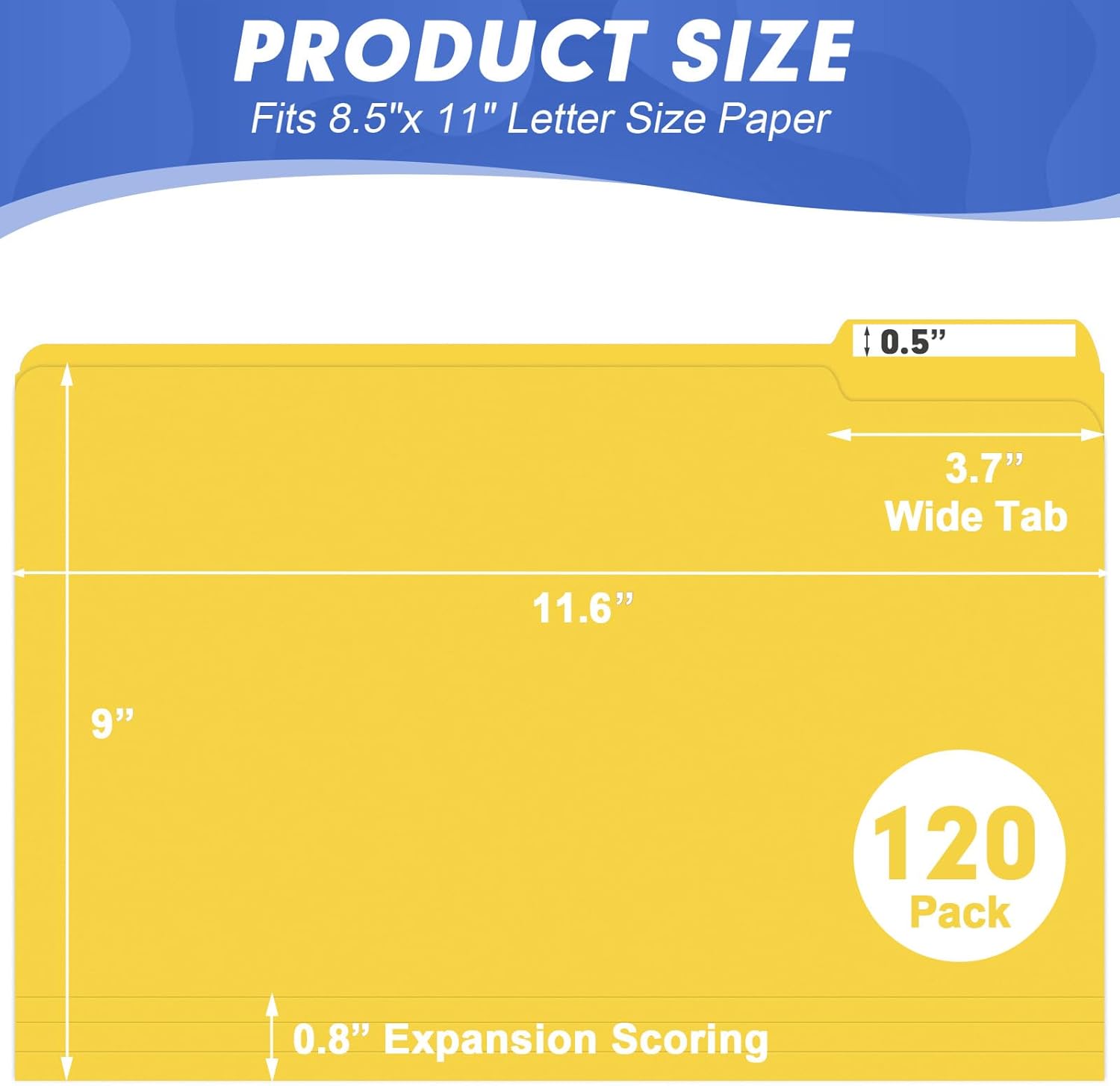 File Folder, HERKKA 120 Pack 1/3 Cut Tab File Folders, File Folders Great for Organizing and Filing, Letter Size, Yellow
