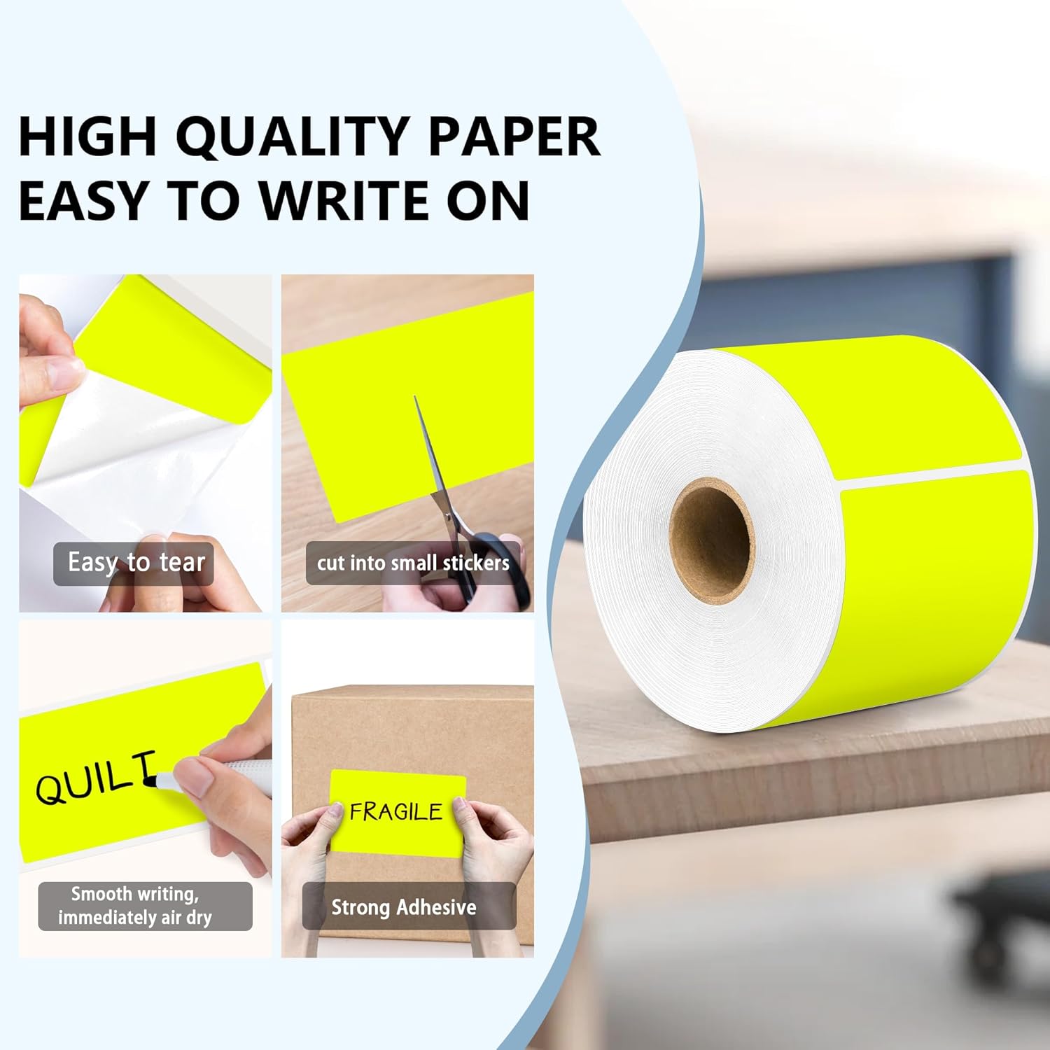 PARLAIM 3 X 5 Inch 1000Per/4Rolls Rectangle Inventory Color Coding Labels,Roll Square Label Stickers for Home (Fluorescent Yellow)