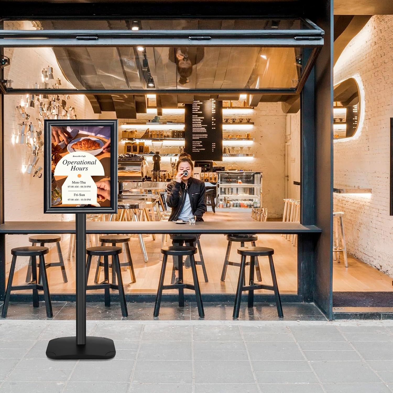 - ✅【180° & 360° Adjustable Views】Our sign stand offers complete flexibility with 180° and 360° adjustable views, allowing you to showcase your posters from any angle.