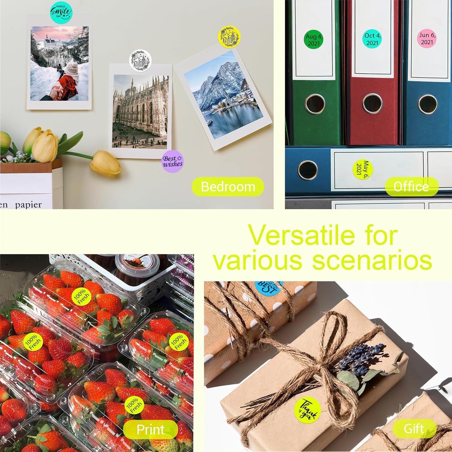 - What You Will Get: Each roll contains 1000 pieces of 1 inch round thermal labels. These color-coding sticker dots are easy to peel off and apply to various surfaces. Fluorescent yellow color round stickers are suitable for home sorting, office organization, business displays, etc
