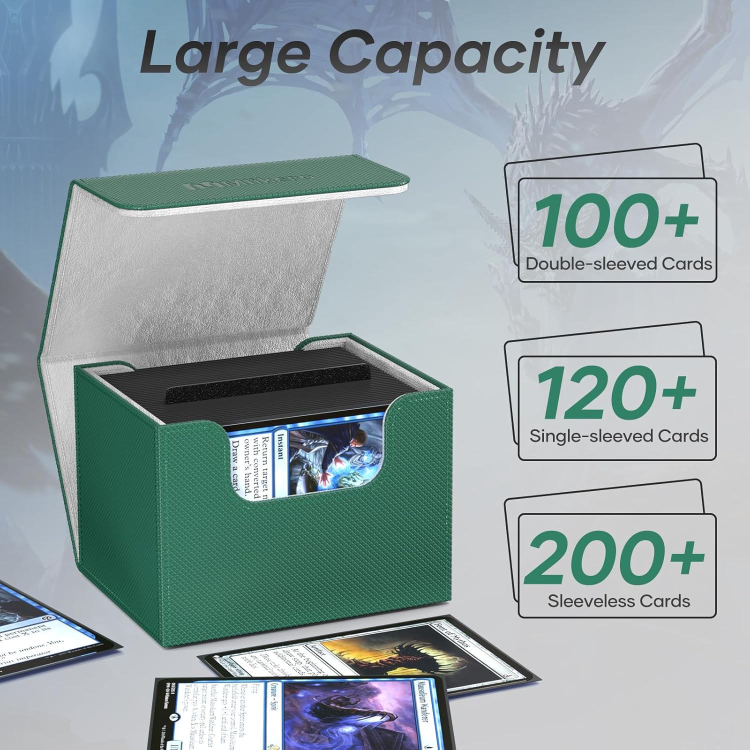 - 【Ample Capacity】Measuring 3.93x3.54x2.95 inches, each commander deck box easily holds 100+ double-sleeved cards, 120+ single-sleeved cards, and 200+ unsleeved cards, meeting all your card storage needs with convenience and efficiency.