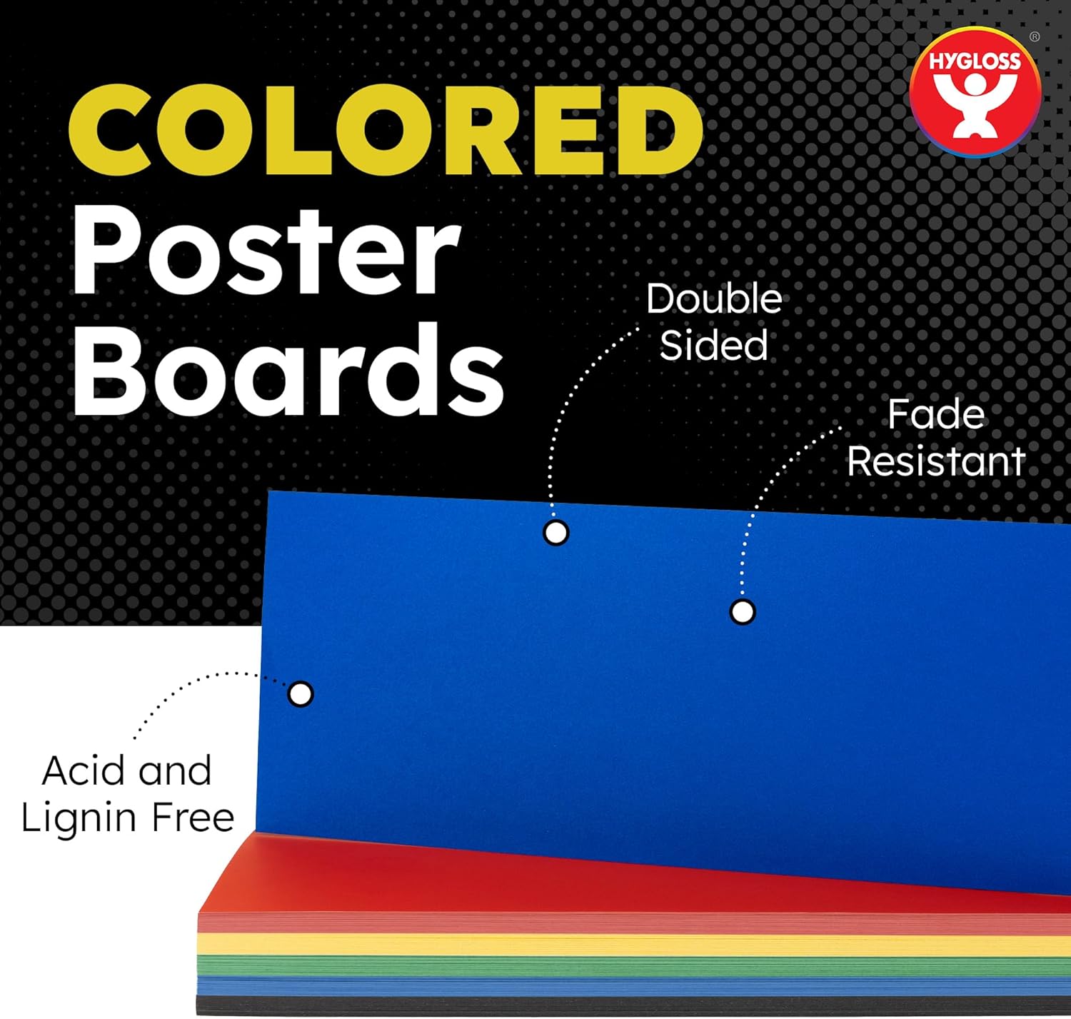- 5 ASSORTED STANDARD COLORS - Sometimes all you need is the basics. Bring your signs and banners to life with this color poster board in bulk. Available in 5 standard assorted colors: Black, Blue, Red, Green, and Yellow to give your projects a clean, polished look.