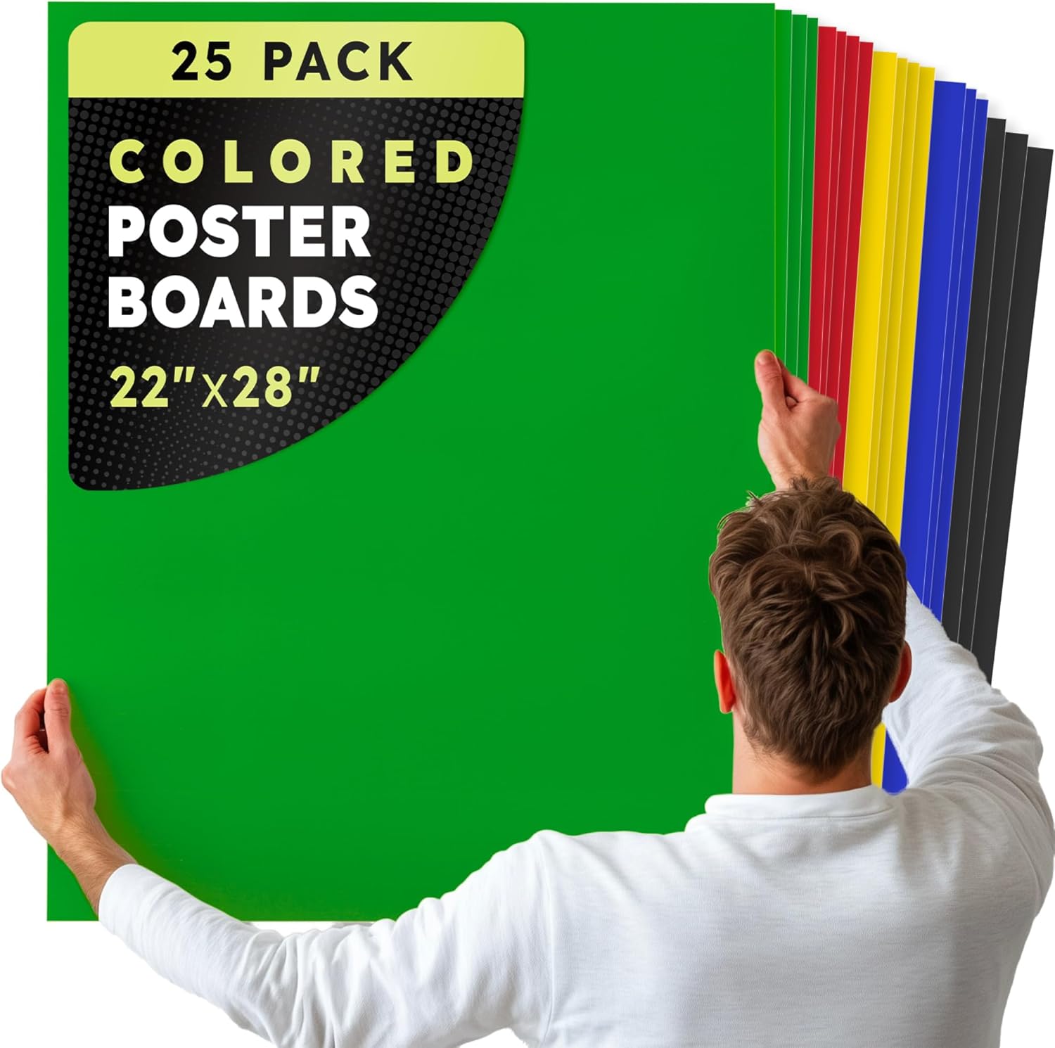 - 5 ASSORTED STANDARD COLORS - Sometimes all you need is the basics. Bring your signs and banners to life with this color poster board in bulk. Available in 5 standard assorted colors: Black, Blue, Red, Green, and Yellow to give your projects a clean, polished look.