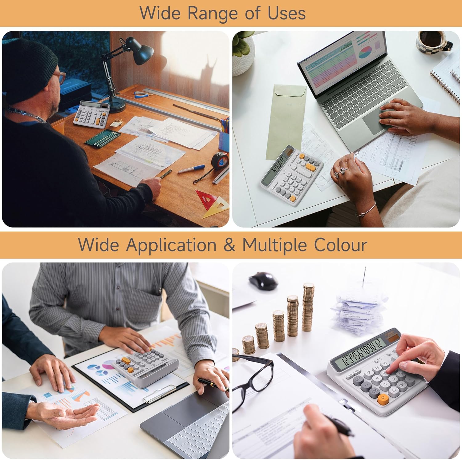 - EXTRA LARGE DISPLAY BIG BUTTONS:The 12 digit desktop calculator has an LCD display that is inclined at a fixed 30 angle, which is exactly in your field of vision and is clearer than the straight display. Jumbo and separate buttons make each press more accurate. Pressing its big buttons is like pressing computer keyboards, very sensitive and you can hear clear tick-tock sounds when you press it. Good choice for accountants who have a lot of calculating work!