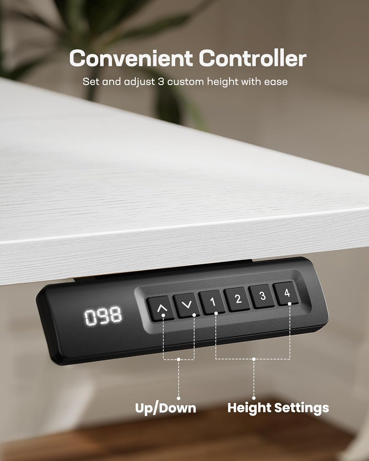 - 3 Memory Height Presets: With user convenience in mind, the Marsail electric standing desk is equipped with intuitive controls that allow you to save up to 4 custom height settings. This feature facilitates seamless transitions between your preferred desk heights, making adjustments swift and effortless.