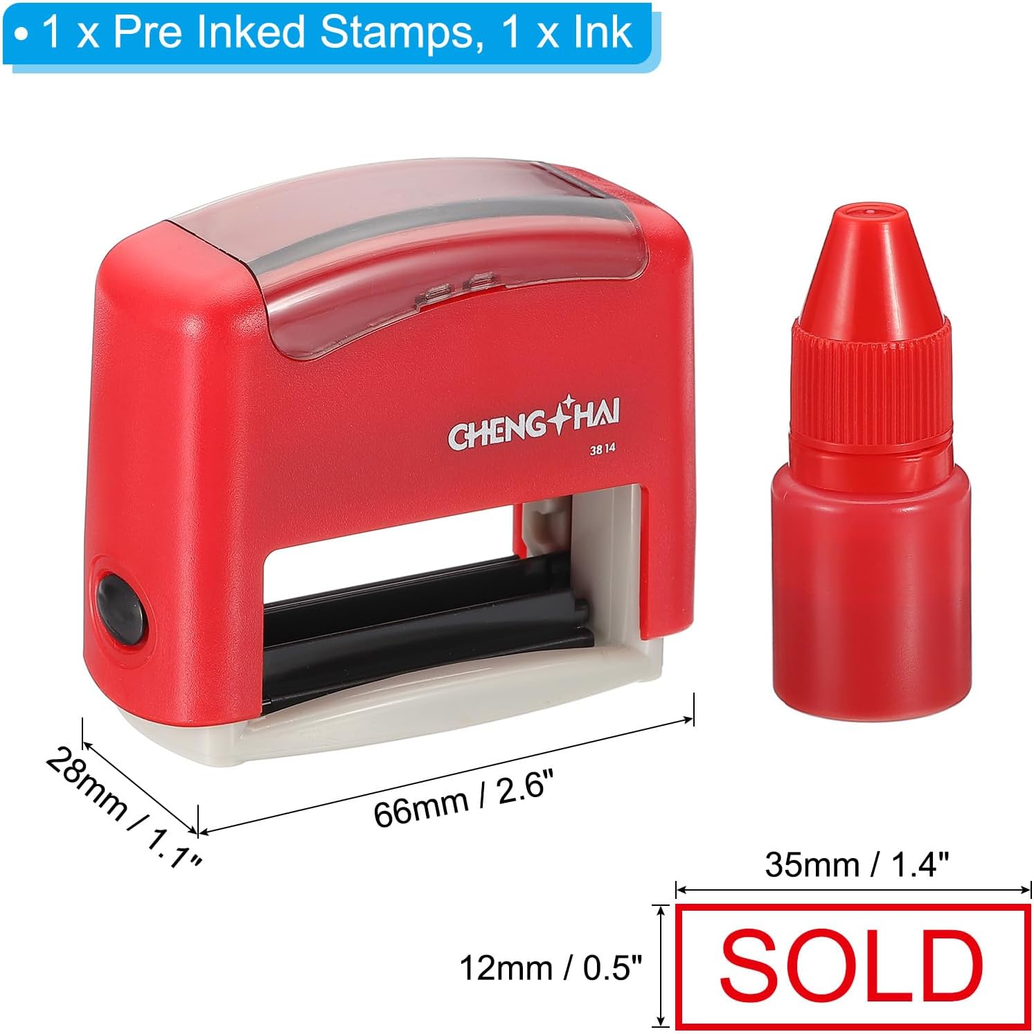 YOKIVE Sold Self Inking Rubber Stamp, Office Ink Business Stamp for Office Documents, Paperwork, Warehouse, Label (Red)