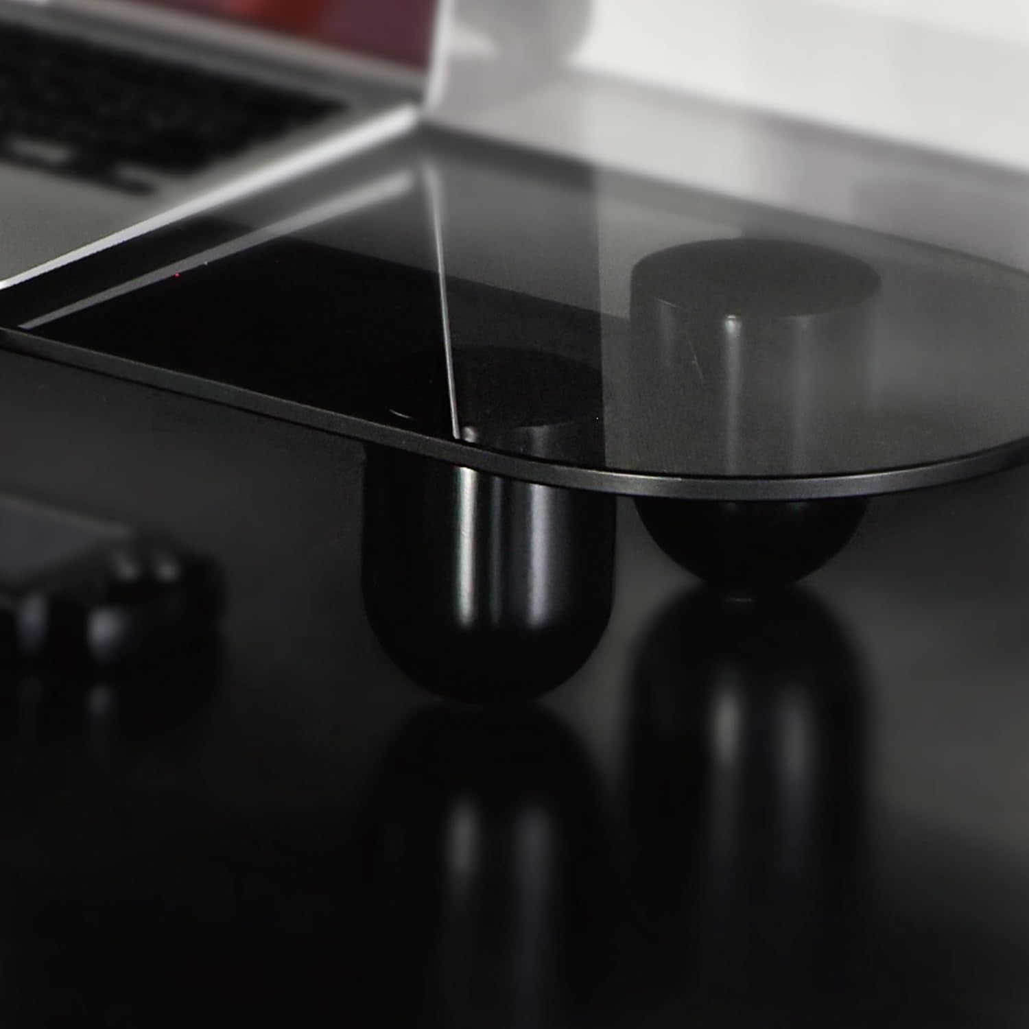 - 【Streamlined Aesthetic】Featuring rounded legs and a smooth oval panel, the Fenge monitor stand delivers minimalist elegance. Its cohesive black match seamlessly integrates into modern offices, gaming setups, or creative spaces.
