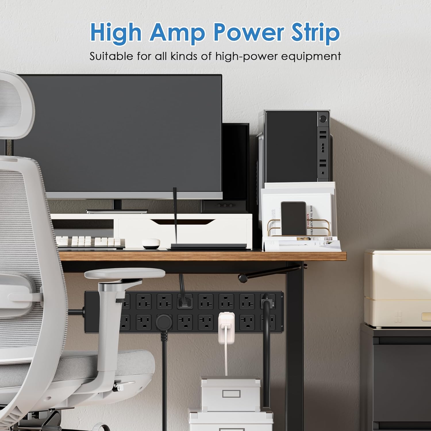 - Heavy Duty Power Strip 20A: Made of rugged metal shell that offers great impact resistant performance, high wear resistance heavy duty power cord protects circuits from fire, impact or rust, and prevents dents and scratches.