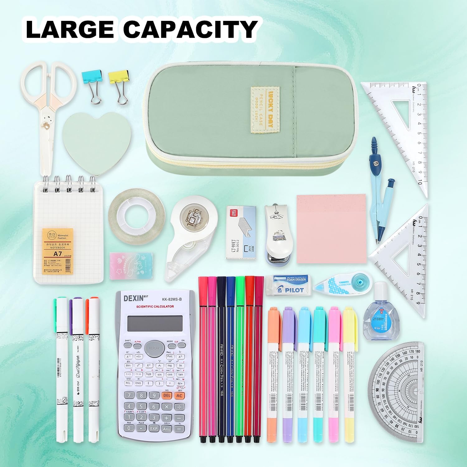 Pencil Case for Girls Kids Teens Adults Big Pencil Bag with Zipper Big Pen Pouch Large Stationery Pen Case Organizer for School Green