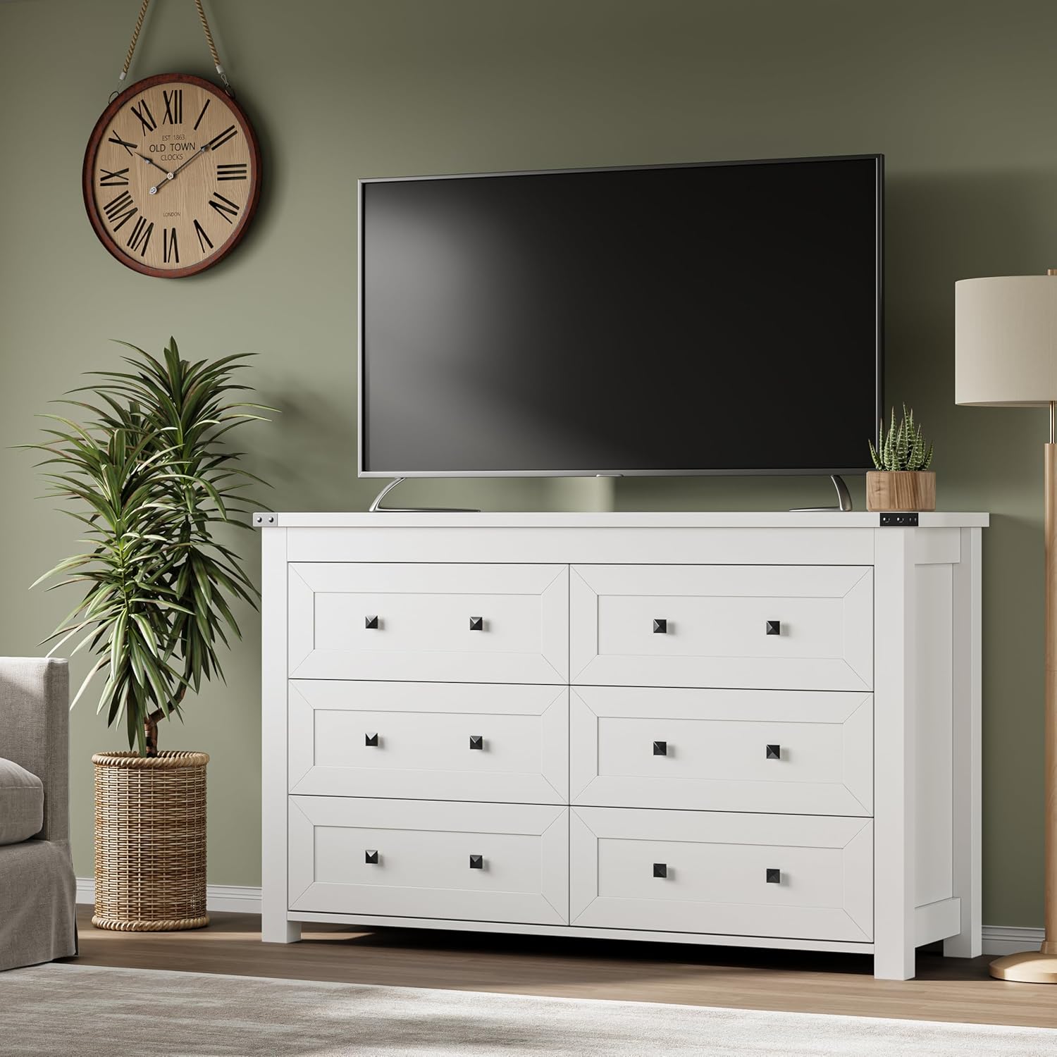- Versatile Usage: BORNOON 6 drawers dresser is designed to meet a variety of storage needs. Use it as a clothing organizer, a TV stand for up to a 60" television, or a stylish storage unit in any room. Its sleek design complements any home décor, making it an ideal addition to bedrooms, living rooms, hallways, or entryways. Organize your space while adding a touch of modern elegance.