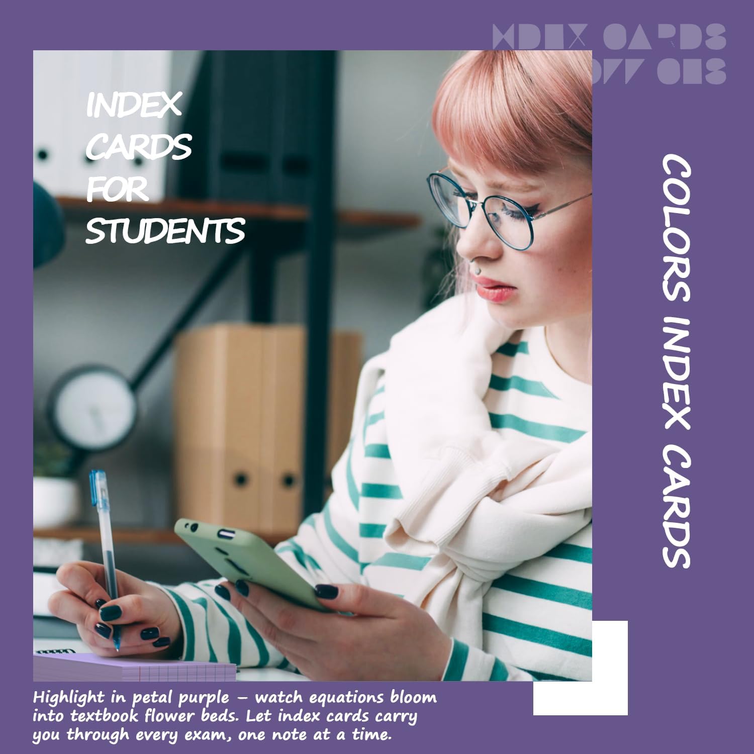 - 【Portable 3x5 Size】The purple note cards are 3 x 5 inches, compact and portable, fitting easily into pocket, backpacks, binders, or desk drawers. Purple flash cards 3x5 liend ideal for students rushing between classes, professionals managing meetings, or retirees keeping grocery lists handy. Carry them anywhere for on-the-go productivity