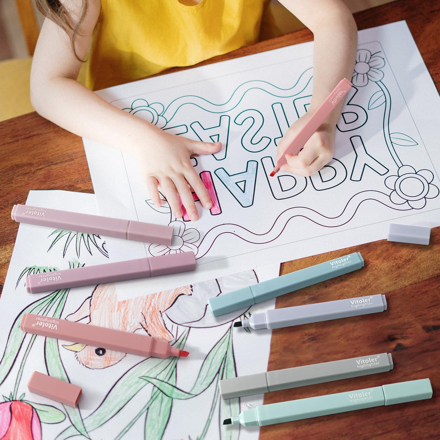Vitoler Pastel Highlighters,8pcs Cute Highlighters with Chisel Tip,No Bleed Bible Highlighter,Multicolor High lighters for School Supplies