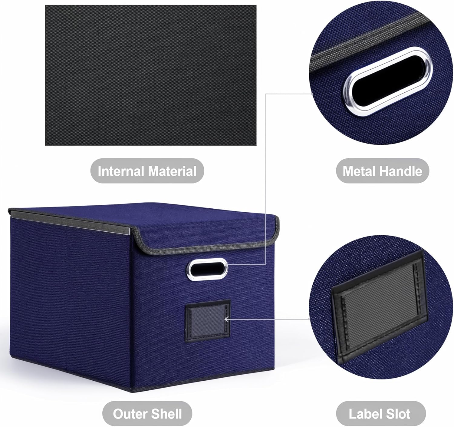 File Organizer Box, Linen Filing Organizer with Lid, Large Desktop File Boxes, Dark Blue,2 Pack