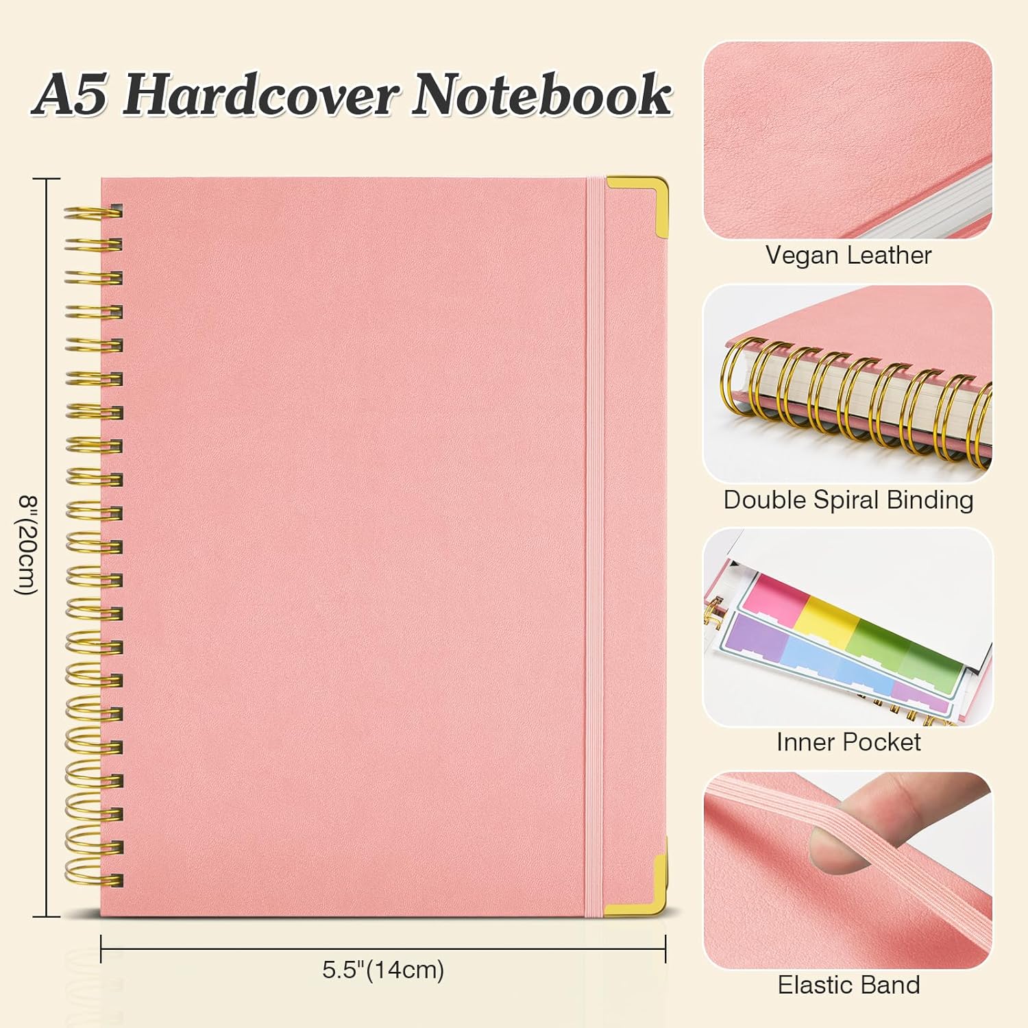 - 【Premium Leather Cover & Strong Binding】Spiral notebook showcases a luxurious leather hard cover, complete with golden corner protectors for extra durability. Its professional design not only looks stylish but is built to last. The strong metal double spiral binding allows for a full 360° lay-flat design, making writing more comfortable and efficient. Whether flipping through or laying the Subject notebook flat, this design guarantees a smooth writing experience.
