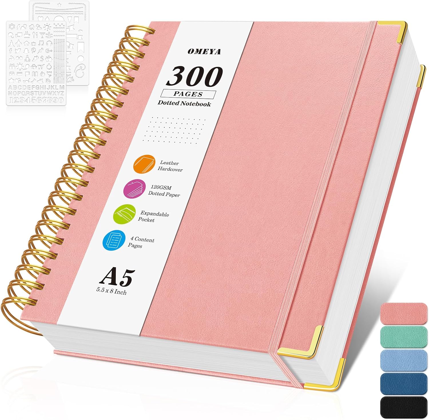 - 【Thoughtful Dot Grid Journal Notebook】Bullet Journaling notebook includes an elastic closure band to keep it securely closed and features an expandable back pocket for storing loose notes or cards. Additionally, it comes with 24 colorful tabbed stickers for easy sectioning and note classification, perfect for school, office, home, work organization, college, business, adults. Additionally it comes with 2 journal stencils for DIY your journaling.