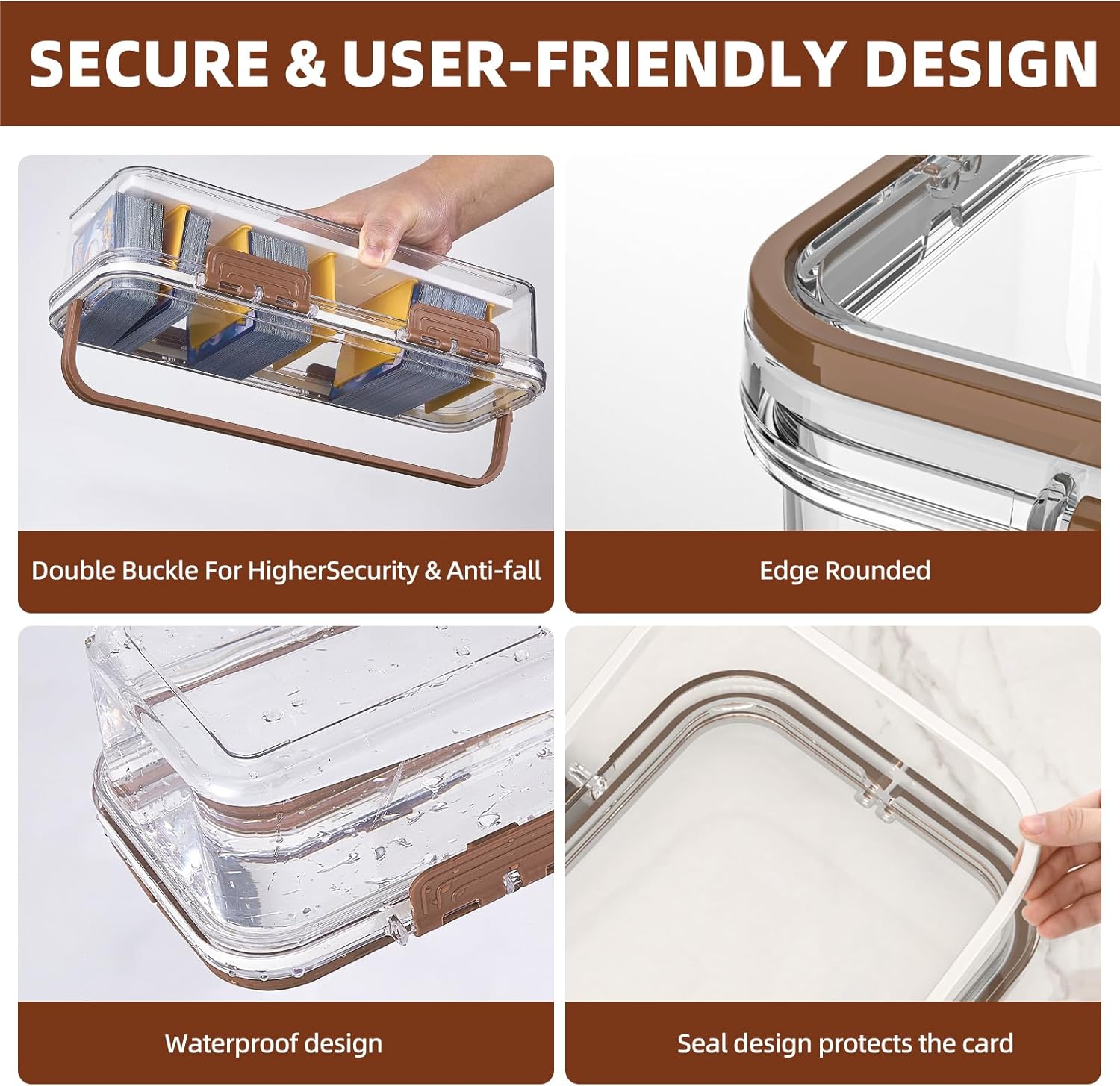 - SealingFunction: The box features a 4-clip design to prevent your card organiser from accidentally falling out. The top lid is equipped with a sealing ring, its airtight design provides excellent protection against dust and moisture, keeps the contents of the box clean and dry, protects your trading card sleeve from dust, water or scratches ensures that your trading card organiser remains in pristine condition.