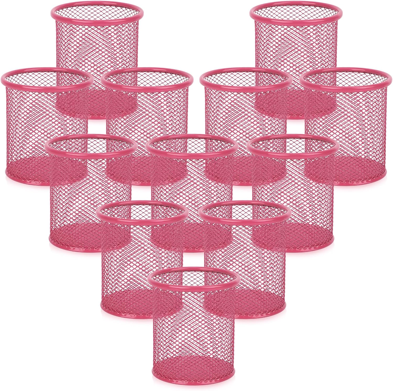Segarty Pen Holer, 12 Pack Round Dark Pink Pencils Holder for Desk, Metal Mesh Pen Cup Container Marker Organizer Set for Office, School, Home, Desktop Storage and Organization