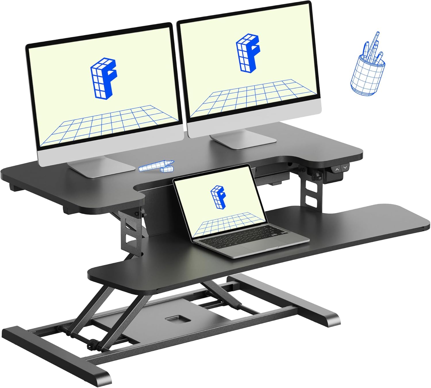 - True Ergonomic Relief – Say goodbye to back, neck, and wrist pain! This desk riser for standing promotes healthy posture with smooth, controlled transitions between sitting and standing, reducing fatigue and keeping you comfortable for hours.