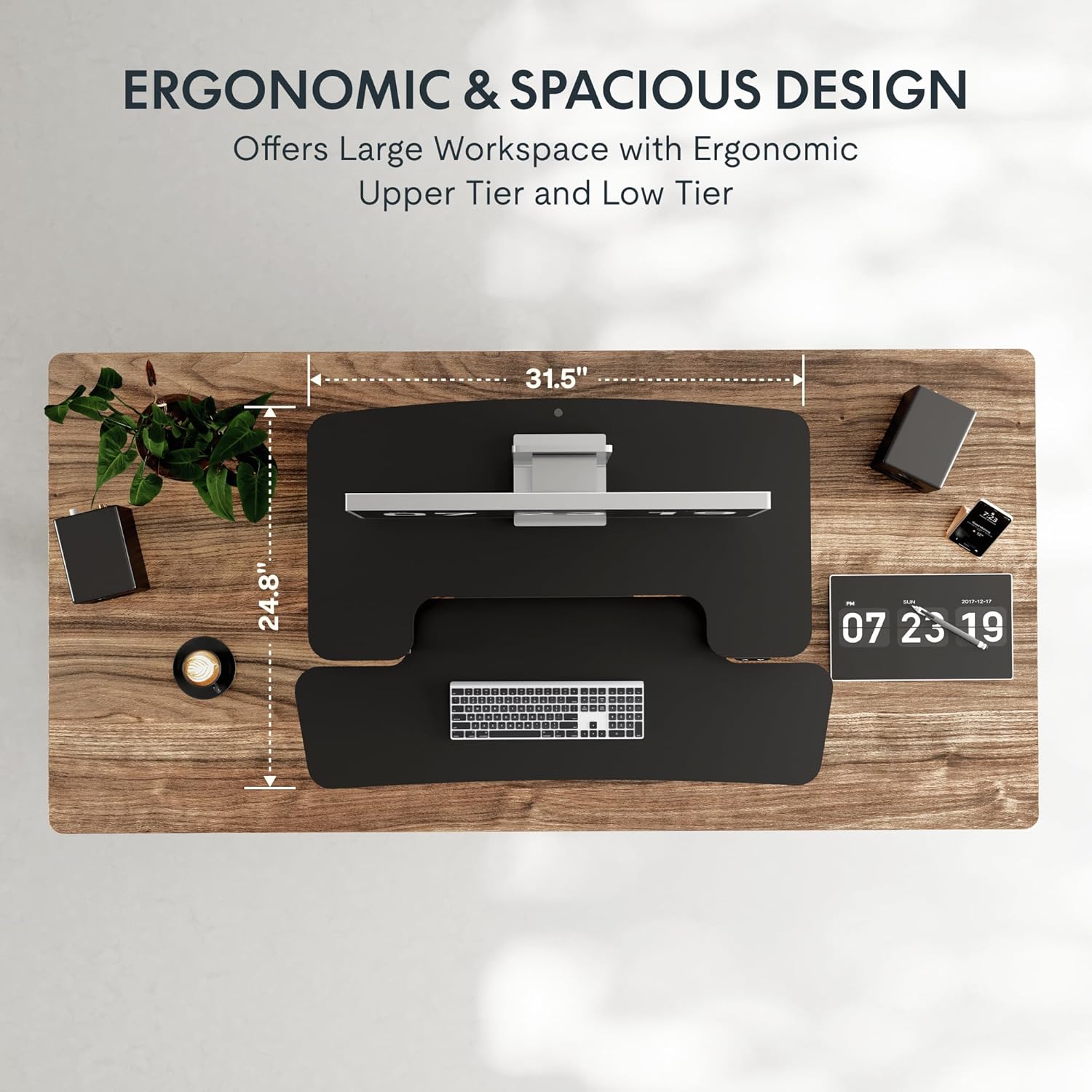 - Quick & Simple Setup – Your desk riser arrives nearly fully assembled—simply unbox it, attach the keyboard tray, and you’re ready to go! No tools or complicated instructions are needed, so you can start working in minutes.