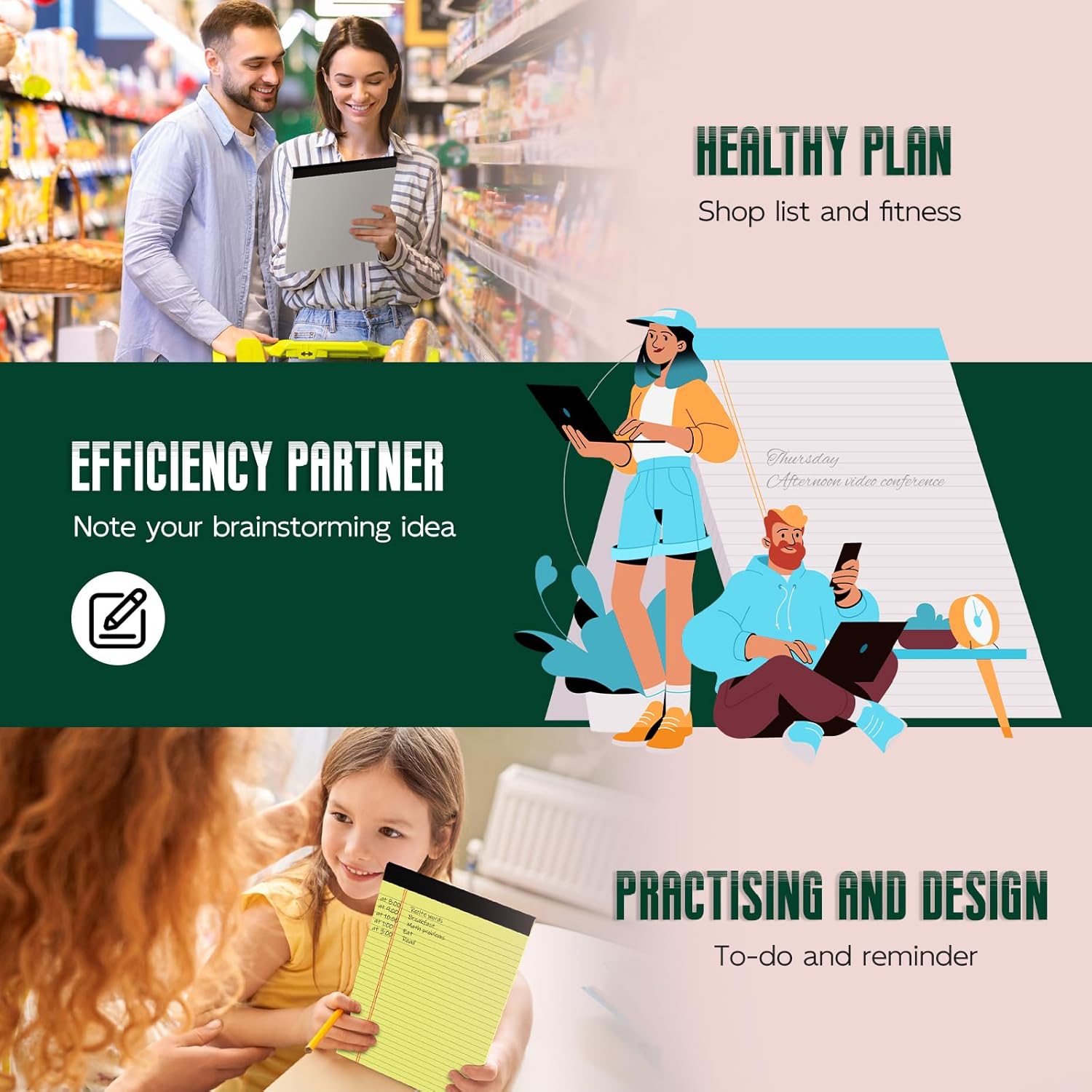 - 【Good Quality Legal Pads】The yellow legal pads 8.5 x 11 made of high quality paper material that prevents ink from seeping between the pages, easy to write or draw on, neutral and ballpoint pens writes smoothly and effortlessly on the notepad. yellow notepads 8.5 x 11 wide ruled legal pads 8.5 x 11 features a cardboard backing for extra support when you writing or taking note, note pads 8.5x11 perfect for writing on the go.