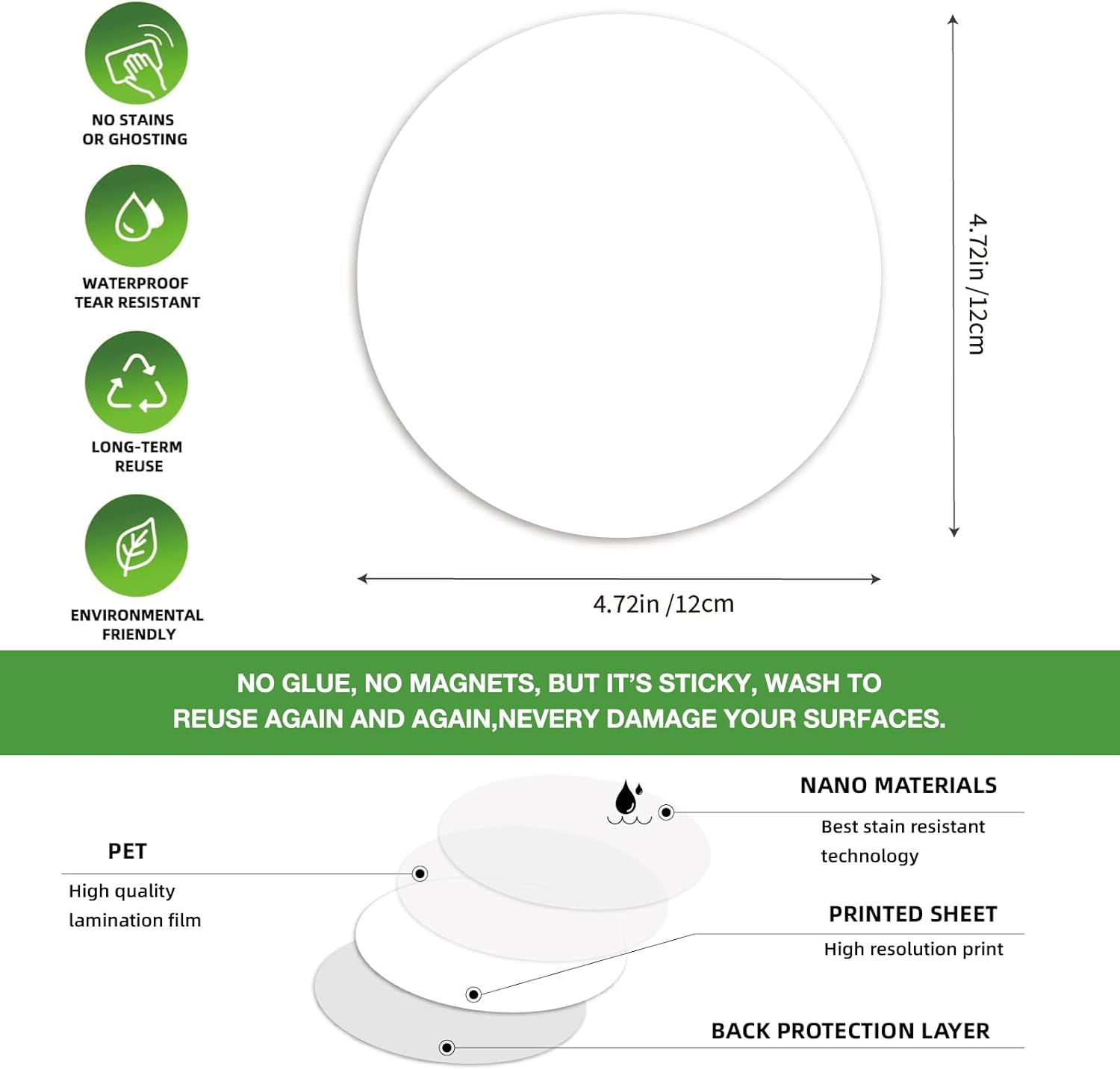 - 💖Really Reusable Dry Erase Sticky Notes - SVNOOC dry erase sticky notes are made of Freon-free Nano Material and dry erase film, can be reused up to10,000 times each. Smooth writing and wipe off easily, no glue, no magnetic but can stick well, heat resistant, microwave safe, just WASH to Renew if get dirt or stickless
