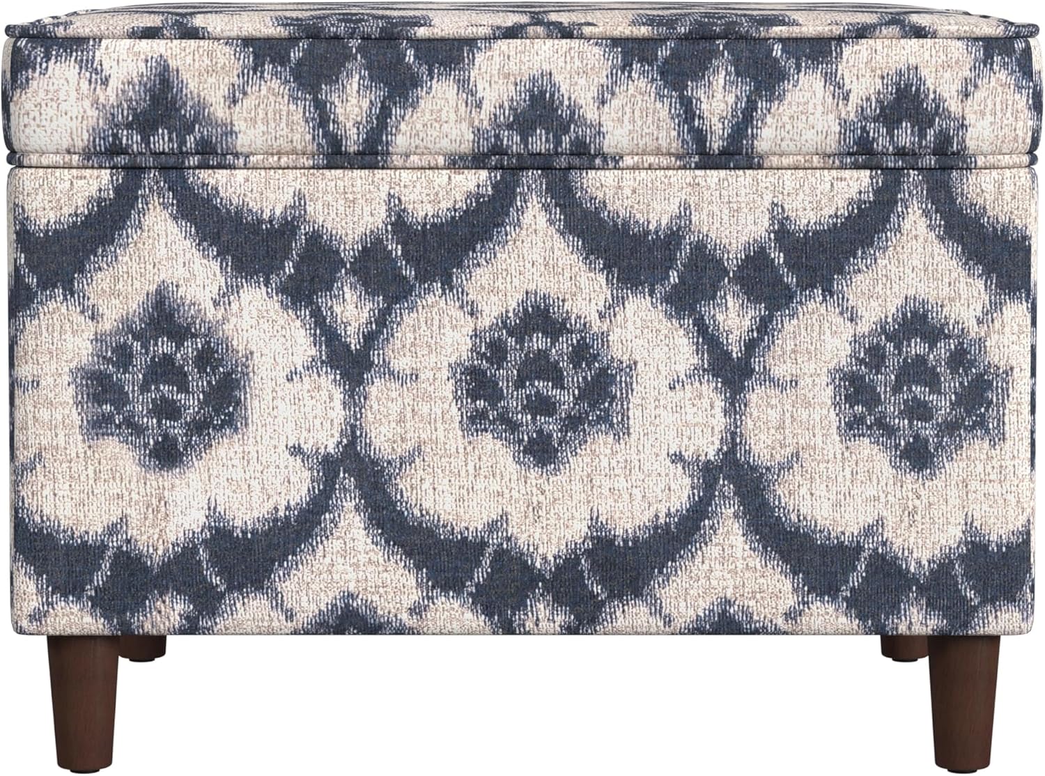 Home Decor | Dinah Collection Modern Storage Ottoman | Ottoman with Storage for Living Room & Bedroom(Blue Medallion Print)