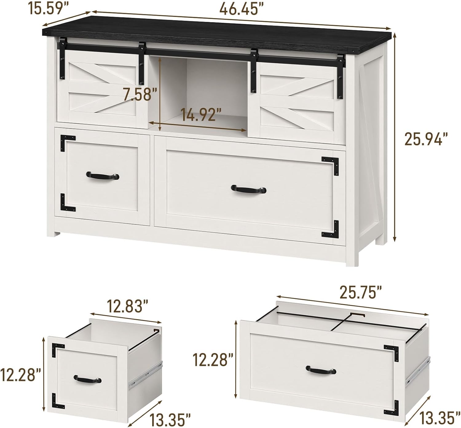 Lateral File Cabinets 2 Drawer with Sliding Barn Doors, Farmhouse Filing Cabinet with 2 Drawer for Home Office,Filing Organization Storage Cabinets for Hanging Files Letter/Legal/F4/A4.(Black.)