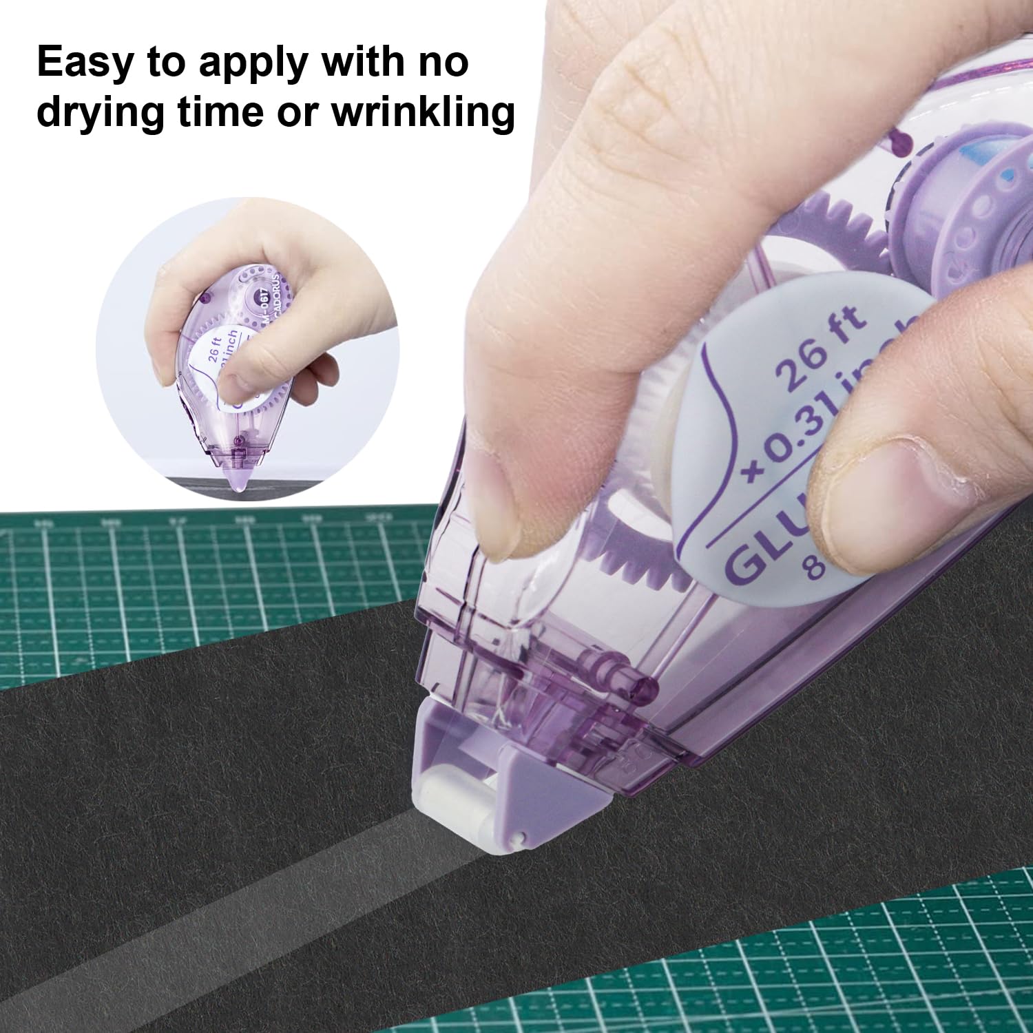 - Compact Yet Long-Lasting Roll Size: Each double sided tape dispenser holds 26 feet of adhesive at 0.31 inches wide—compact yet efficient. Whether scrapbooking or quick repairs, the glue tape for scrapbooking keeps your work flowing. Portable and easy to use, this glue tape roller sticks cleanly and stores easily. Stay on task with a smooth-running glue roller designed for everyday crafting.