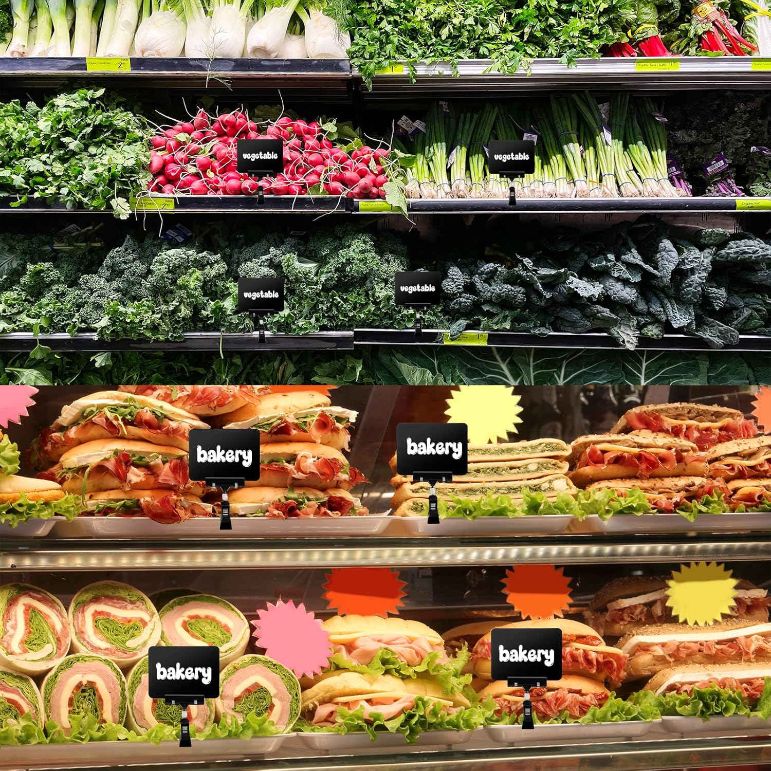 - Wide Application: these clip on sign holder is suitable for price and commodity signage displays in stores, offices, supermarkets, shopping malls, parties and exhibitions, and can be used for advertising purposes, price tags, display notes, reminders, etc. You use them in many scenes