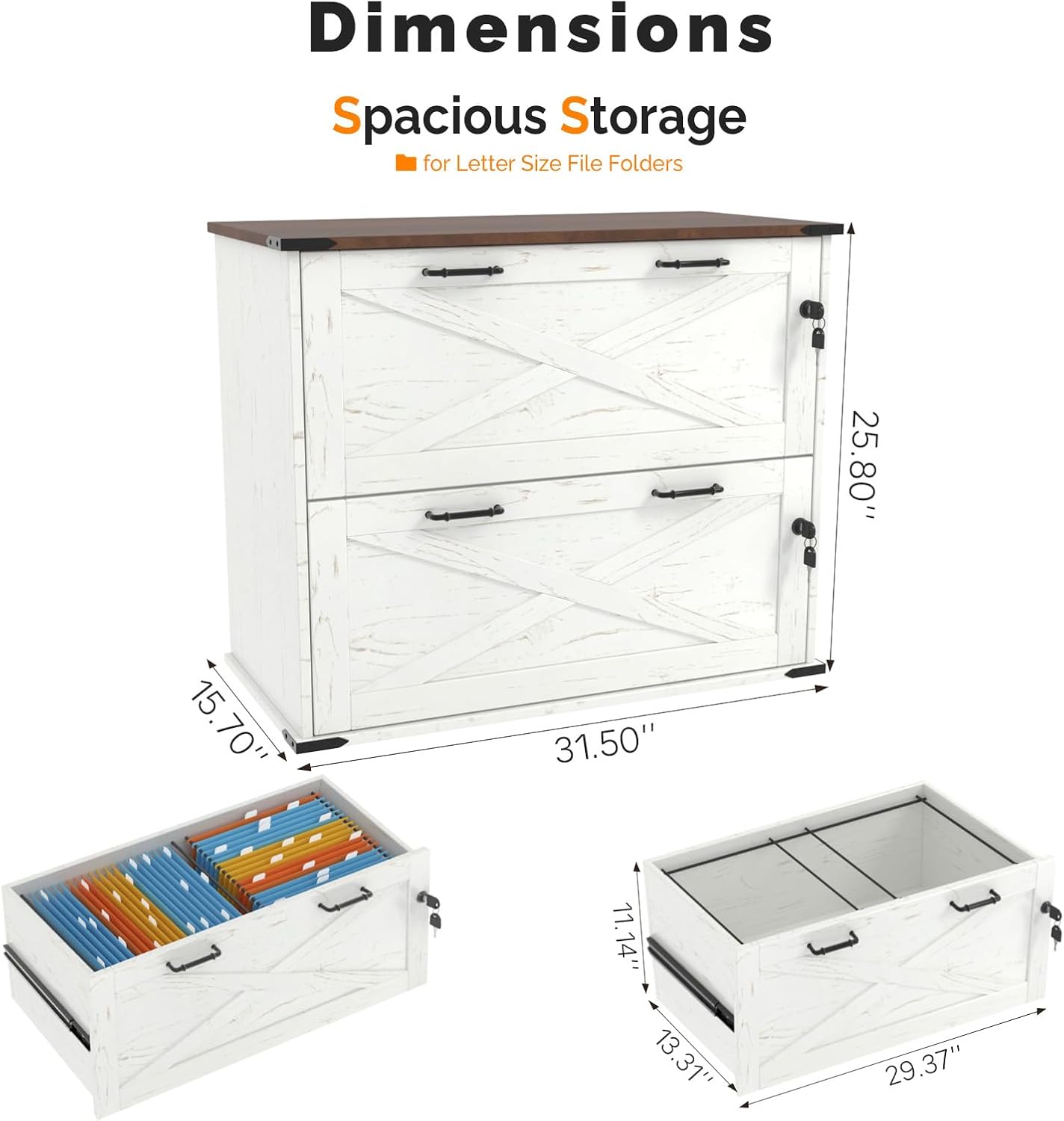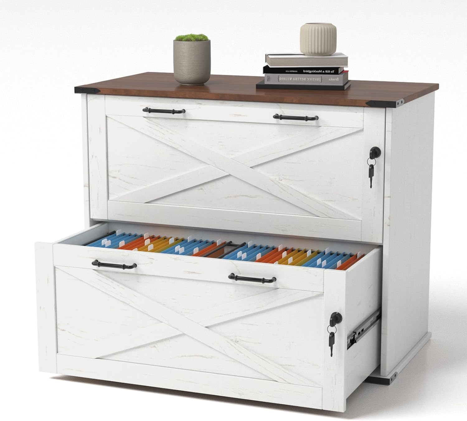 - ăCharming Farmhouse StyleăThis file cabinet, with its barn door elements and ingenious appearance design, showcases unique charm and stands out, adding farmhouse charm to your home while also being able to enliven any office, study or living room.