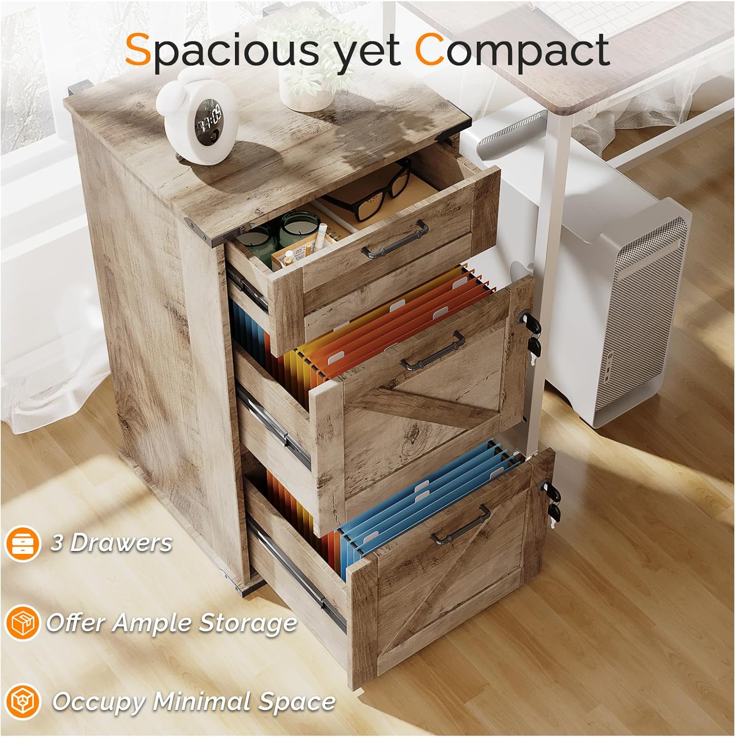 - ăSmart Storage SolutionsăBoasting 2 large drawers for Letter-Size file hanging folders and a top small drawer for office/study supplies, it features partitioned storage, offering ample space while occupying a small area for efficient use.