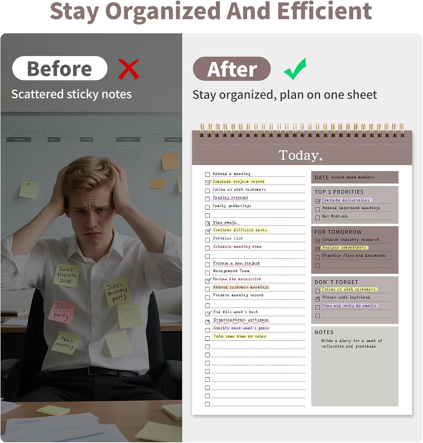 - High-Quality And Portable Design: Our planner is crafted with 100gsm thick paper, ensuring a smooth writing experience. The tear-off line design makes it easy to carry and use on the go, while the hard backboard provides a stable surface for writing and viewing.