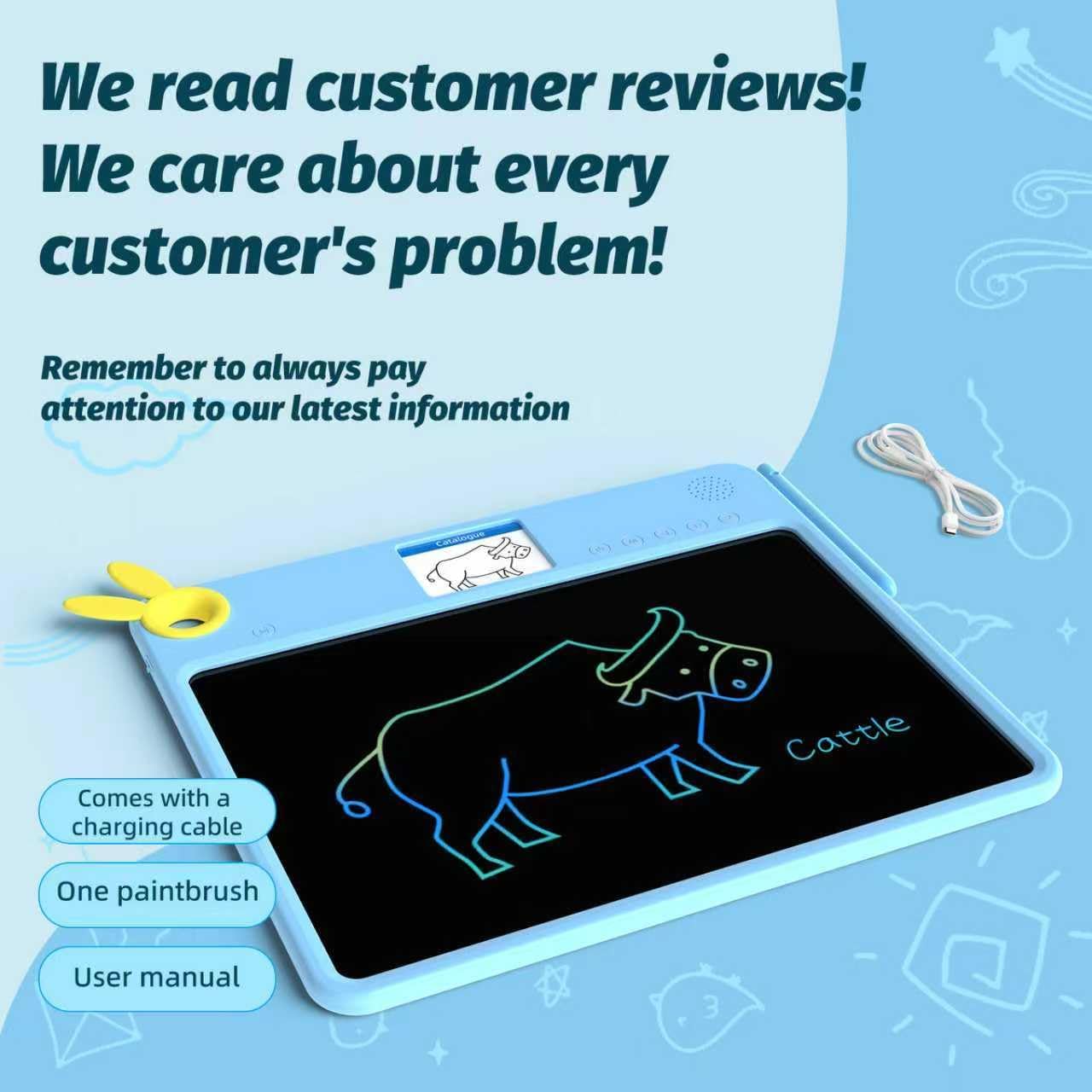 - 【Reliable Features, Well-Built Components】This LCD writing tablet for kids includes a color screen, speaker, 600mAh battery, USB-C charging, and a durable writing surface. Comes with a plastic drawing pen, charging cable, and manual—more advanced than ordinary doodle boards.