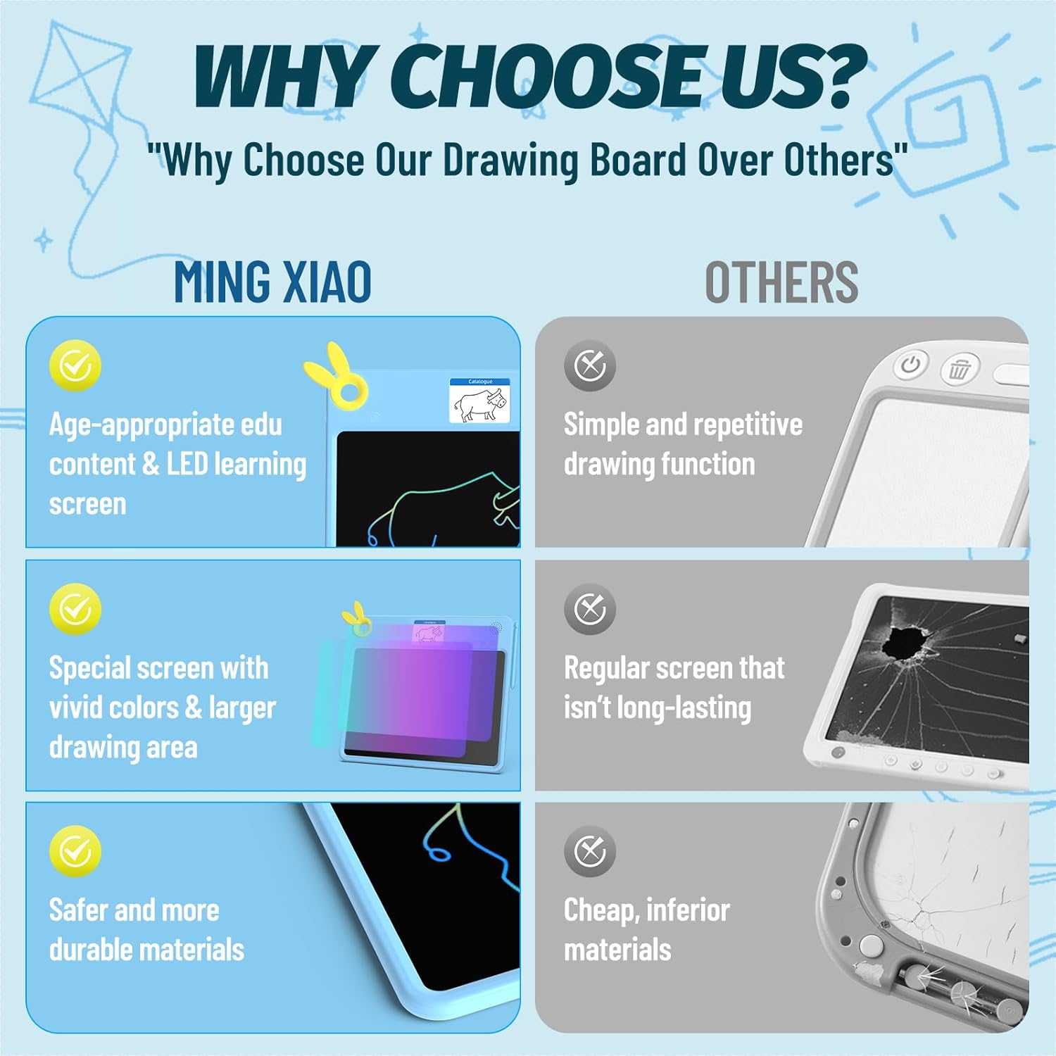 - 【A Thoughtful Gift with Safe Materials】Made with non-toxic, child-safe plastic and a sealed battery design, this LCD kids writing tablet is a safe, durable, and fun educational toy. Perfect gift for boys and girls aged 3, 4, 5, 6, 7—great for birthdays, home learning, or travel.