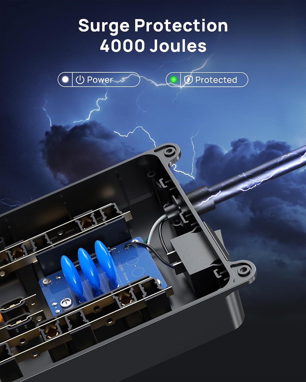 - 4000 Joules Surge Protection: It’s ETL listed, and made of the top-grade ul94 v-0 flame-retardant material. With 4000j surge protection, it safeguards your TV, computers, phones & office equipment from potentially damaging power disturbances, creating peace of mind. it has an on/off switch, which can be used to reset it if you overload it and it "pops" the security circuit.