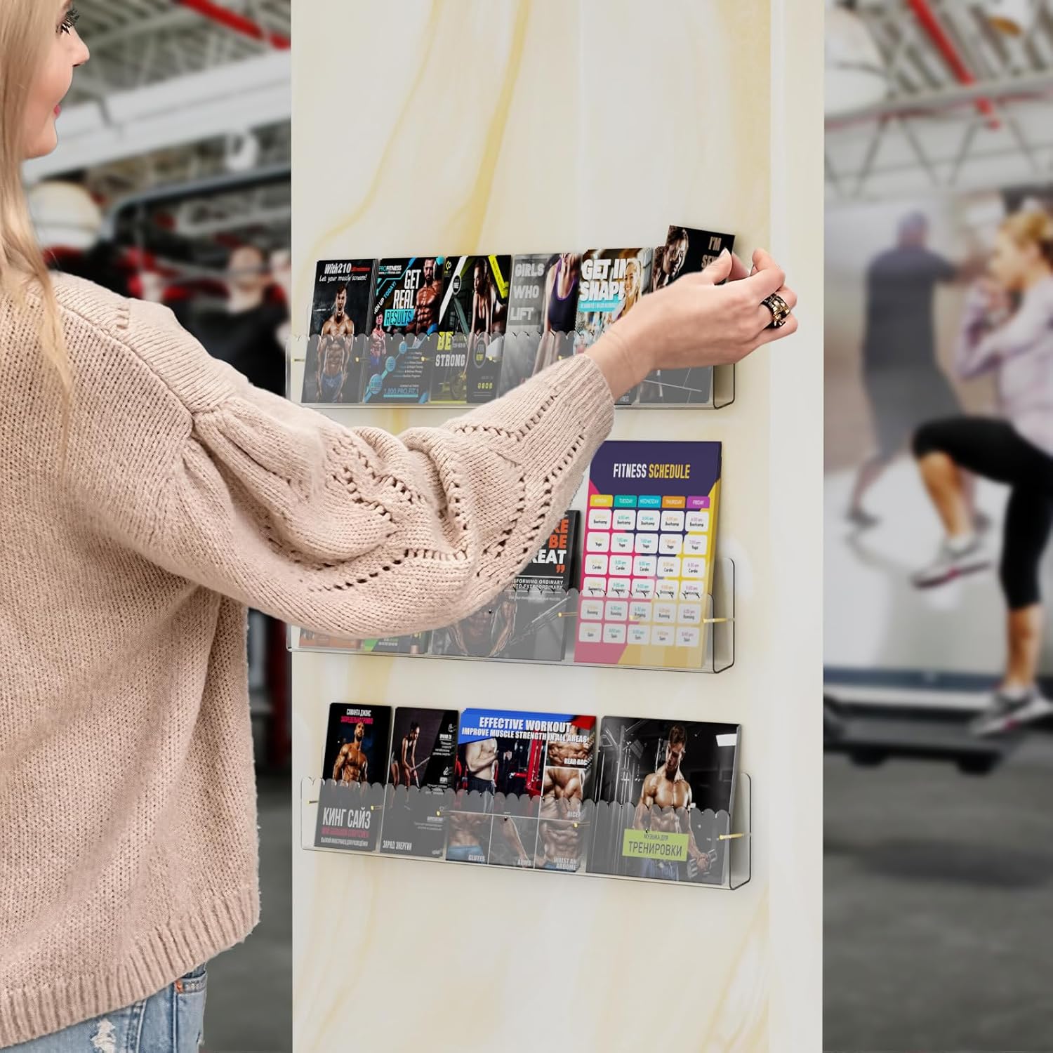 - šćMultipurpose Widely UsećLaumffon brochure holder wall mount perfect for displaying menus, drink specials, important announcements, photos, brochures and pamphlets. It can be used in restaurants, trade shows, exhibition, hospitals and any other locations where you want to display your brochures or childbooks.