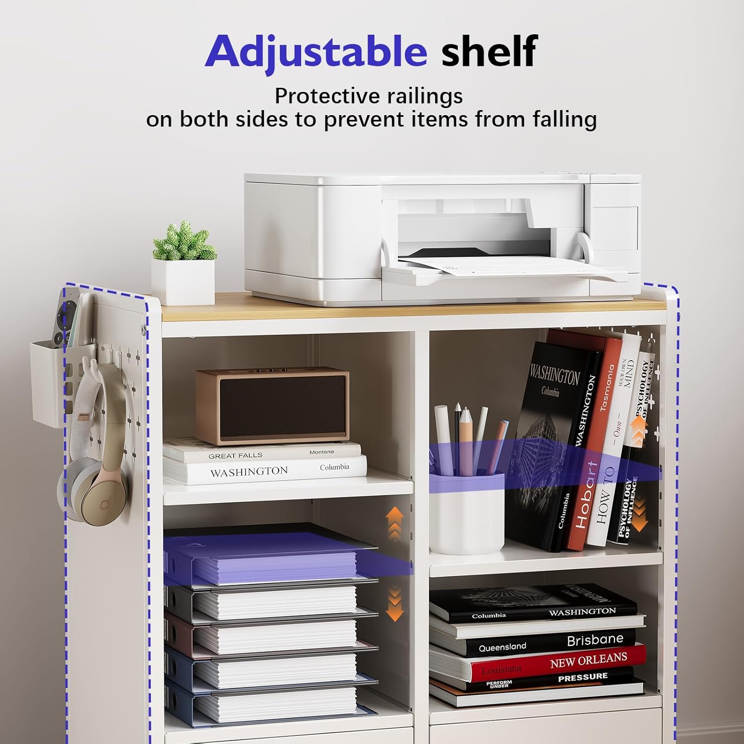 - Multi-Functional Office Solution:Compact yet versatile, this piece combines a secure filing cabinet and printer stand. The MDF surfaces wipe clean easily, while protective side railings prevent items from falling.