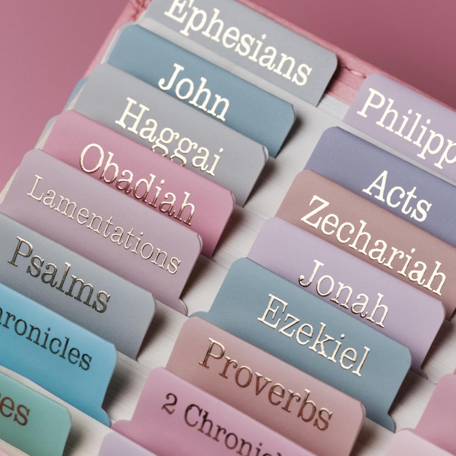 - Unique: Bible tabs with summary descriptions and Gold Foil Embossed Lettering.This is the ideal christian gi.ft. These unique Bible index tabs make a great gi.ft for your girlfriend, mum, kids, or anyone who loves beautiful things in life.
