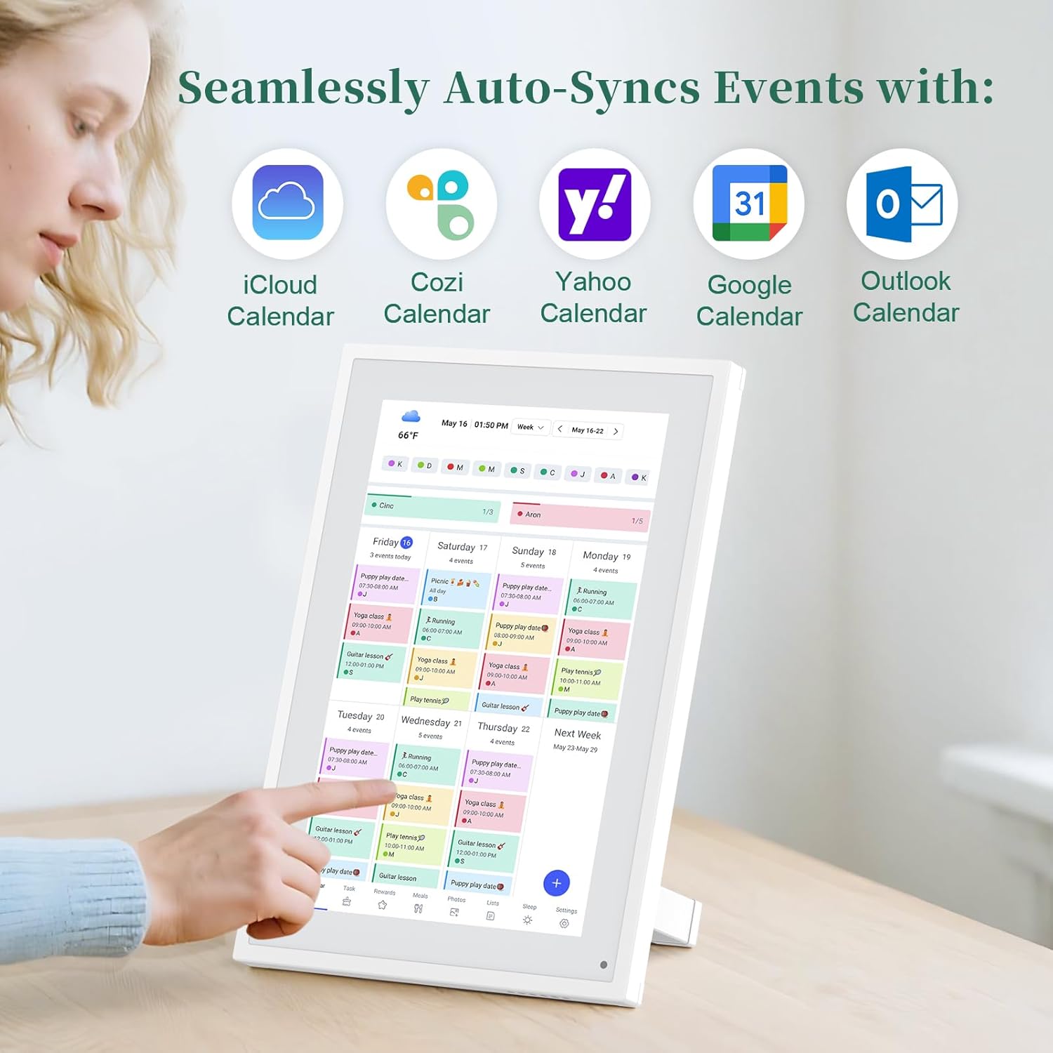 - ✅Easy Setup, Seamless Calendar Syncing: Plug in, connect to Wi-Fi, and sync your calendars in minutes. Compatible with Google, iCloud, Outlook, Cozi, and Yahoo. Add events directly on the device or through the our app.