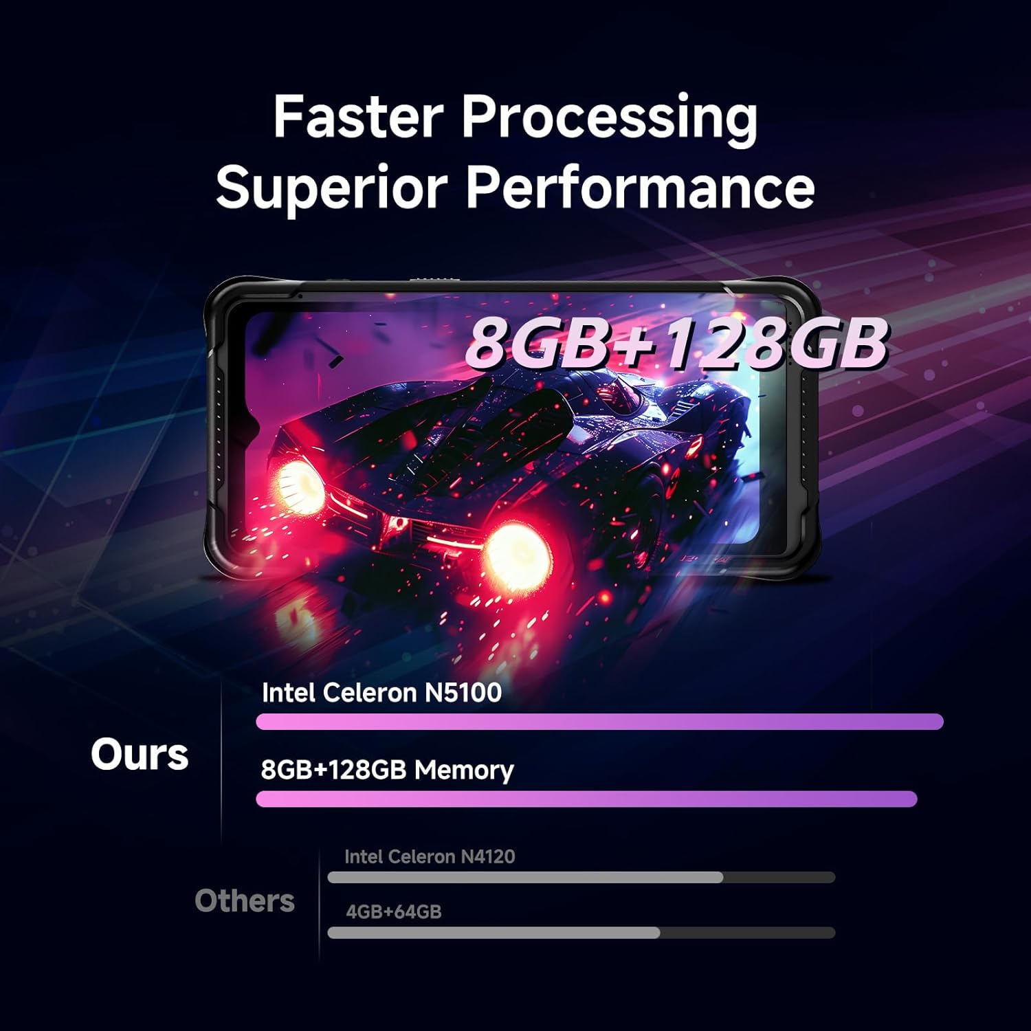 - [ Handle Demanding Field Applications ] - The ONERugged heavy duty barcode scanner is equipped with a pre-installed Windows 11 Pro OS and adopts a 2.8GHz high-speed Jasper Lake N5100 processor, delivering stable and efficient performance even while multitasking. With 8GB RAM+ 128GB ROM and max 512GB TF card expandable storage space, you'll have ample space for storing documents, videos and apps and processing large software applications