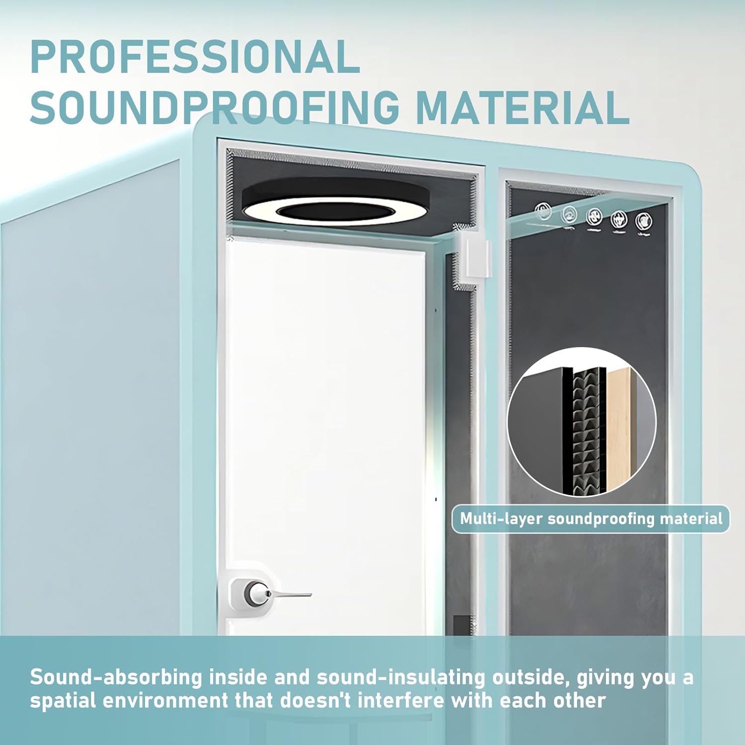 Office Sound Booth with Audio Privacy - Freestanding Soundproof Booth Includes Light Blue Frame Design,Modern Soundproof Room with Light, Socket,Casters for Study,Negotiation (59.05IN)